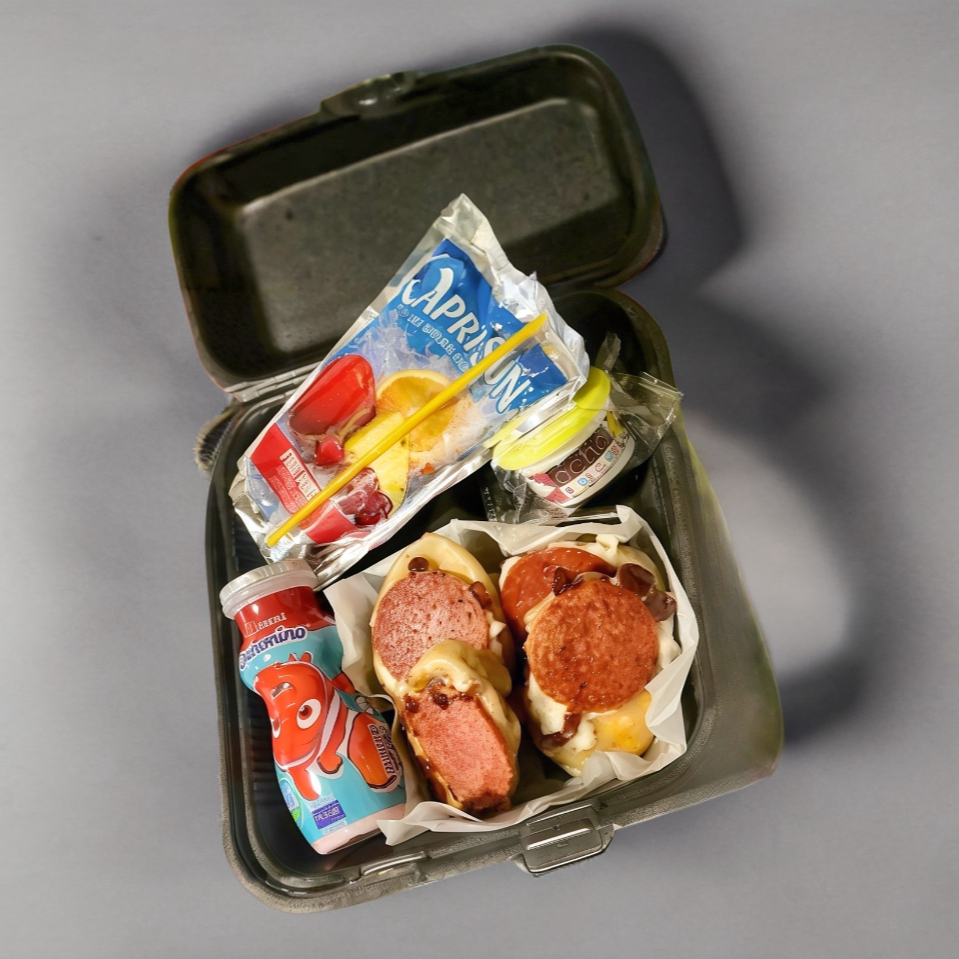 4 Piezas de pizza dumplings rellenos de carne, salsa de tomate, queso mozarella y verduras invisibles.incluye: jugo, postre y sorpresa. .