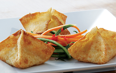 3 Piezas de surimi, queso crema, pollo y camarón.