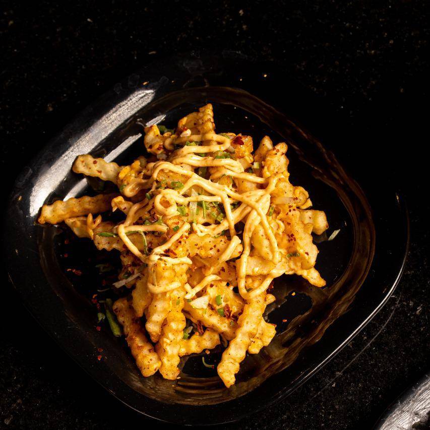 Surimi, aguacate y queso crema por dentro; camarón tempura, tocino y aderezo chipotle por fuera. Rollo caliente empanizado.
