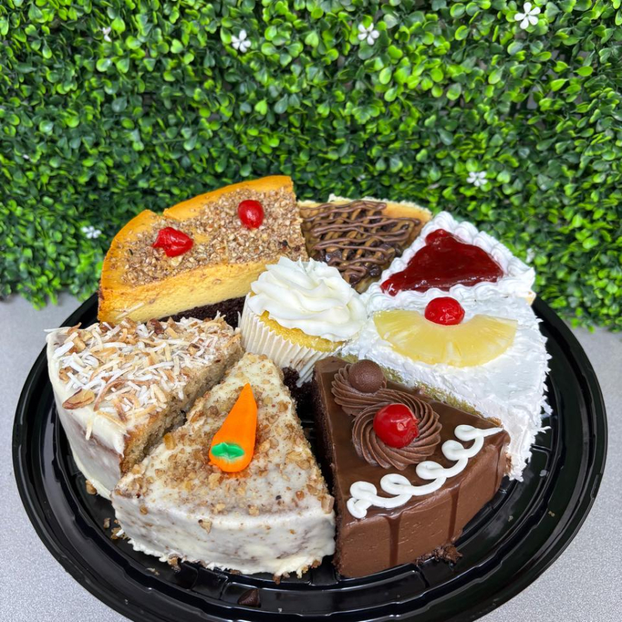 8 rebanadas de diferentes sabores y una cubierta al centro.