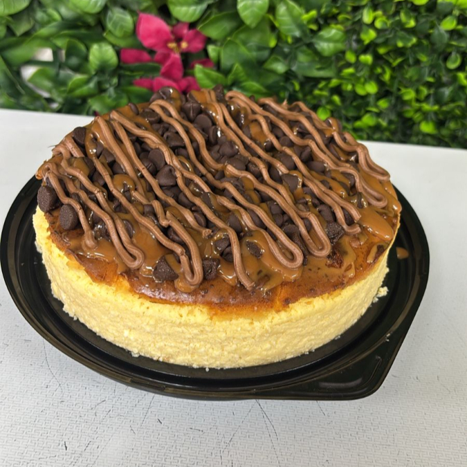 Cheesecake con base de galleta y chocolate Hershey.
