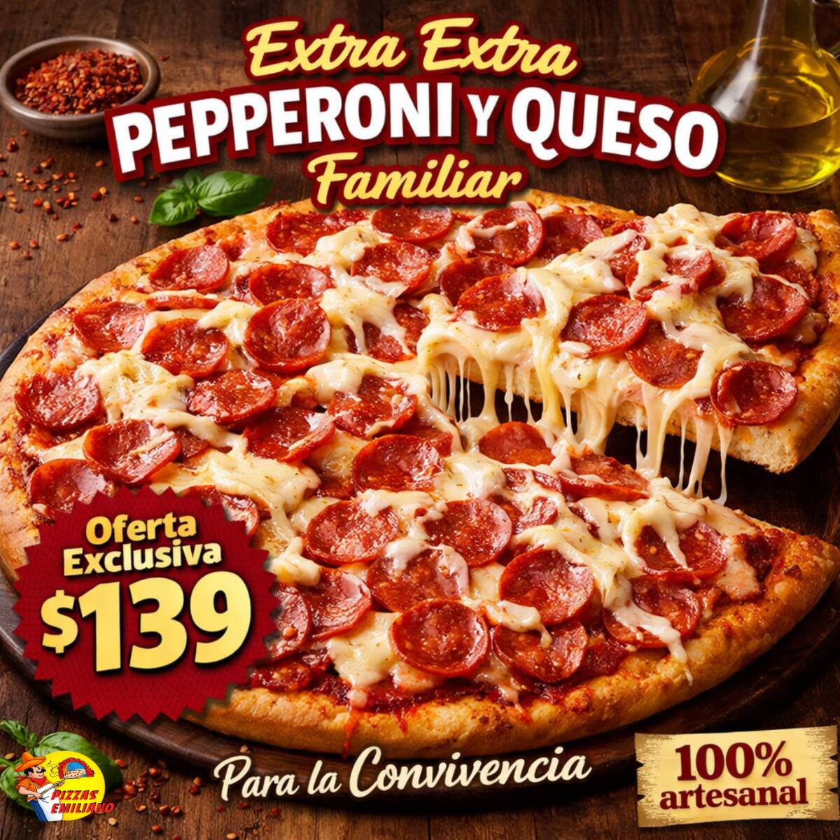 Extra Peperoni Extra Parmesano Extra Chipotle Familiar