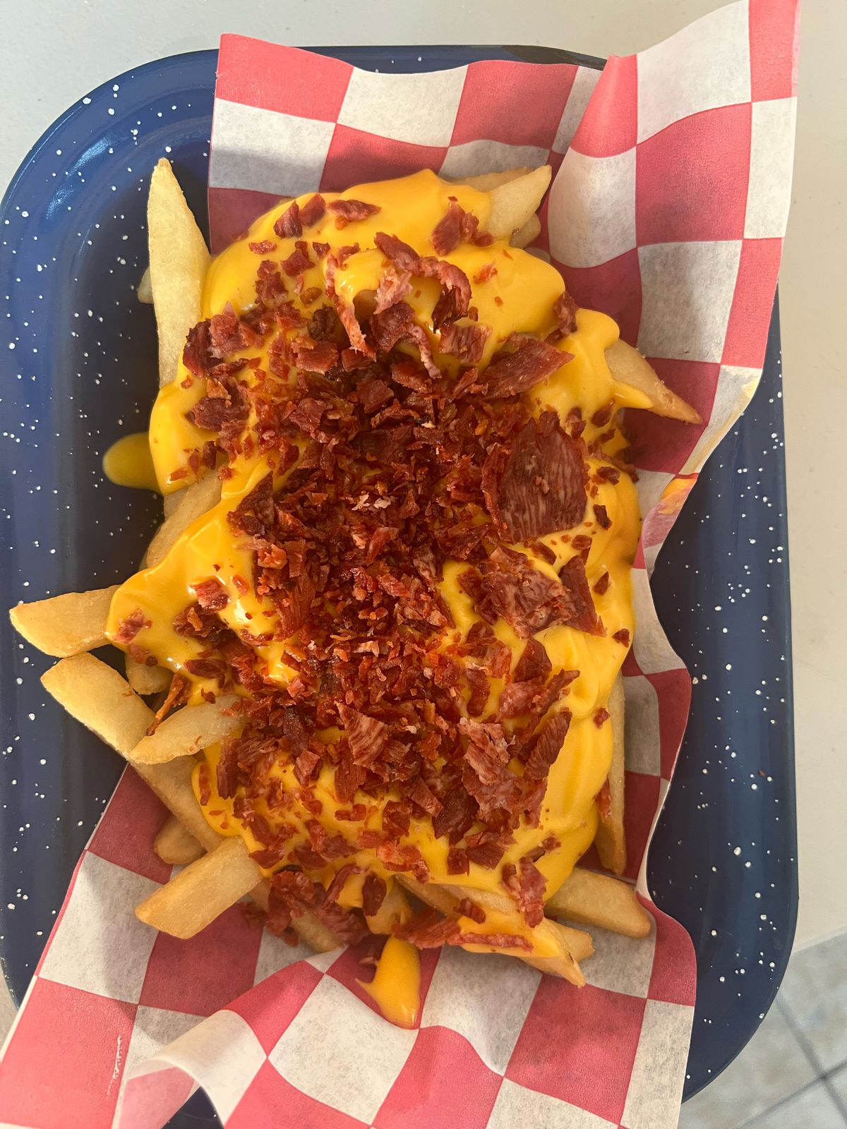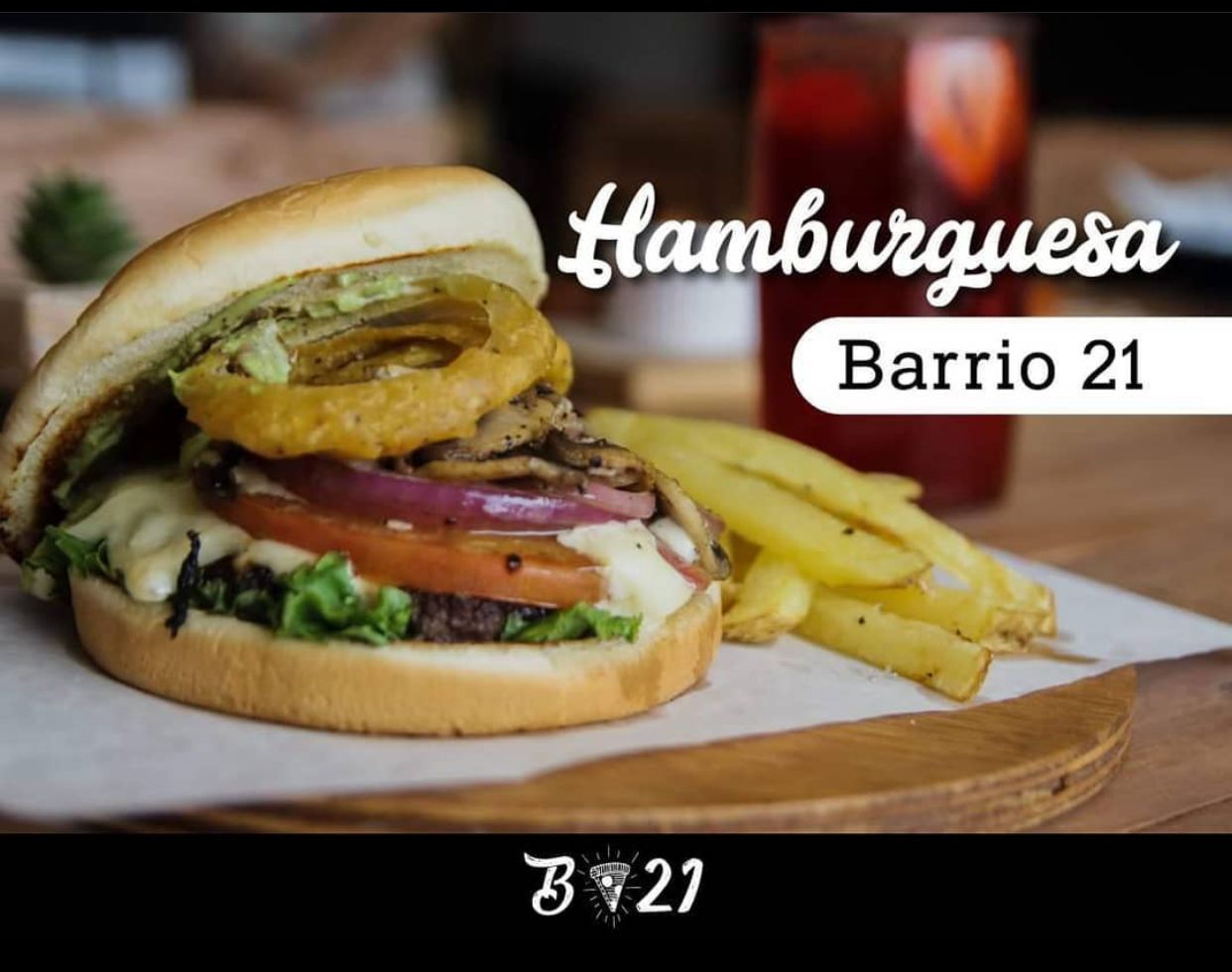 arne hecha en casa 200gr, queso, lechuga, tomate, aros de cebolla, tocino, champiñones y guacamole