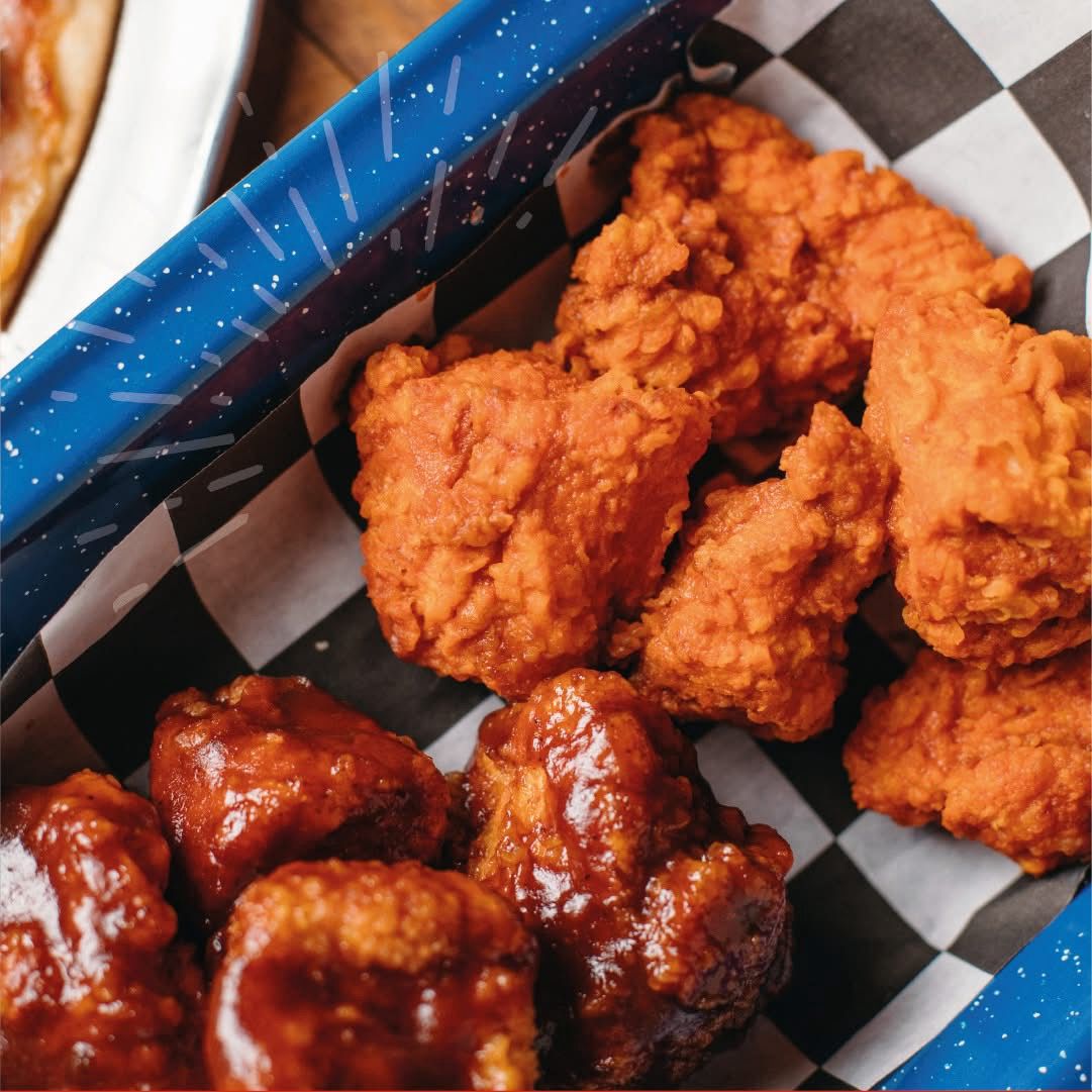 pepperoni, espinaca, jalapeño, champiñon,“trozos de aros de cebolla y mini boneless