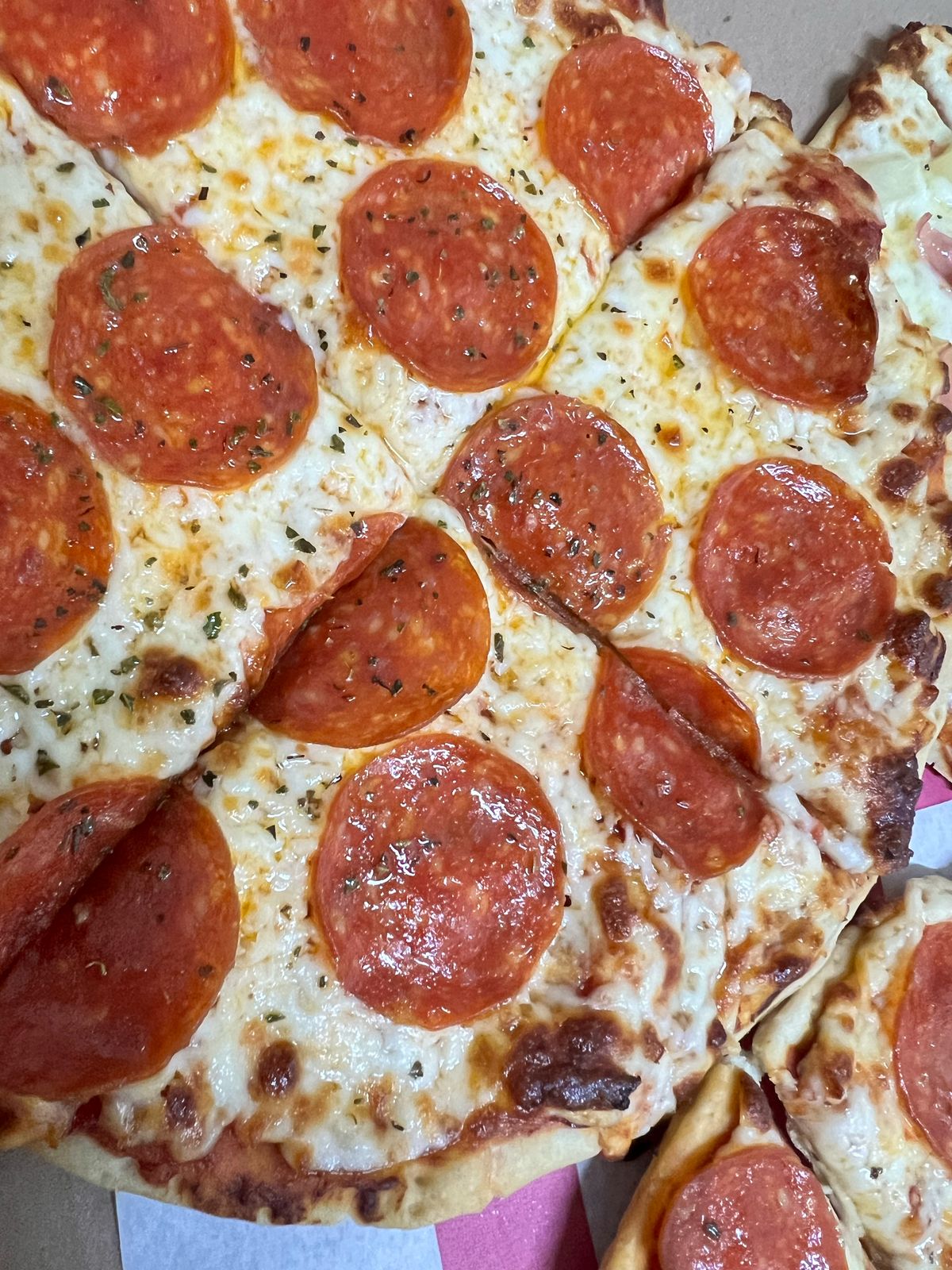 Delicisosa Pizza recien hecha de Pepperoni, tamaño chica.