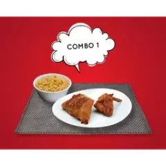 2 piezas de pollo asado (muslo y pierna) y 1 complemento.