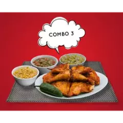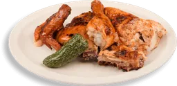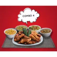 1 pollo asado tradicional + 4 piezas de muslo y pierna (1/2 pollo) + 4 Complementos