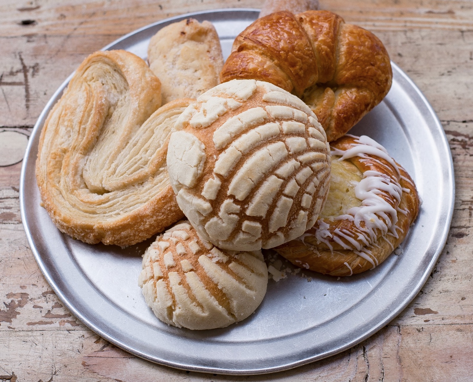 En pan de barra con cebolla, cilantro, queso y aguacate.