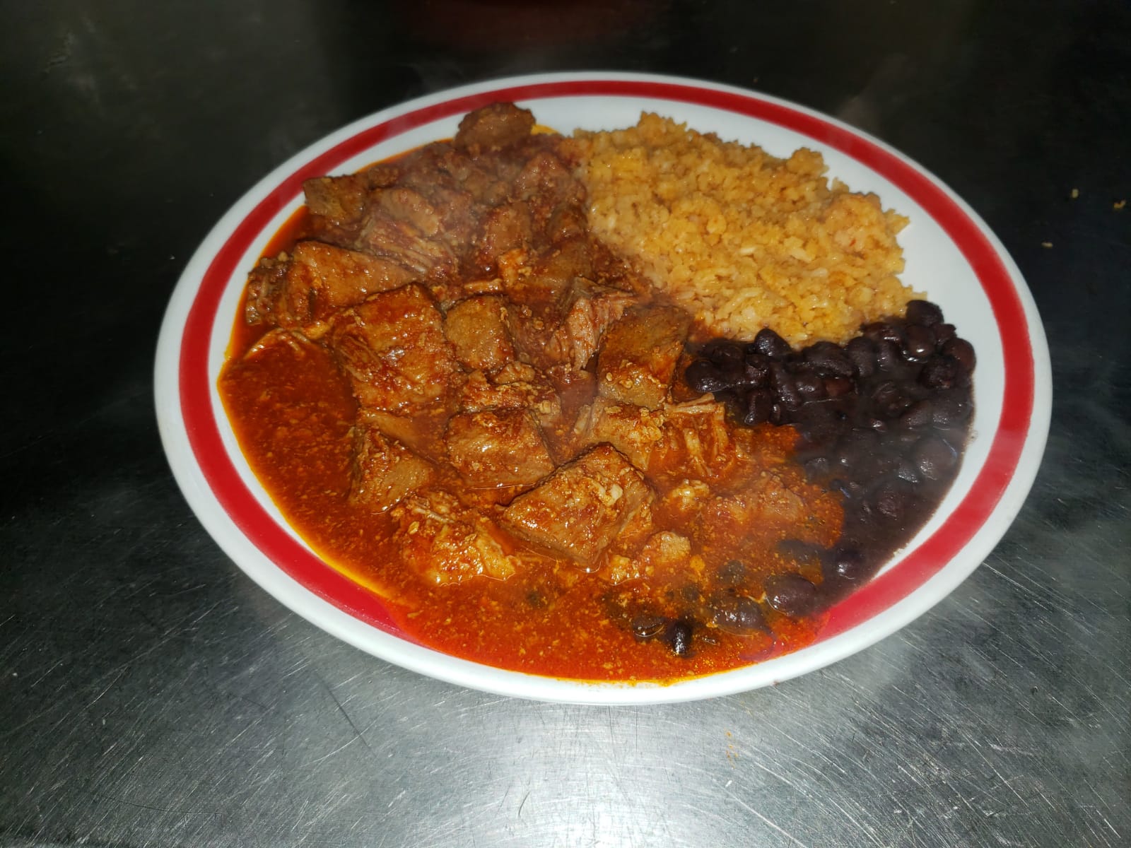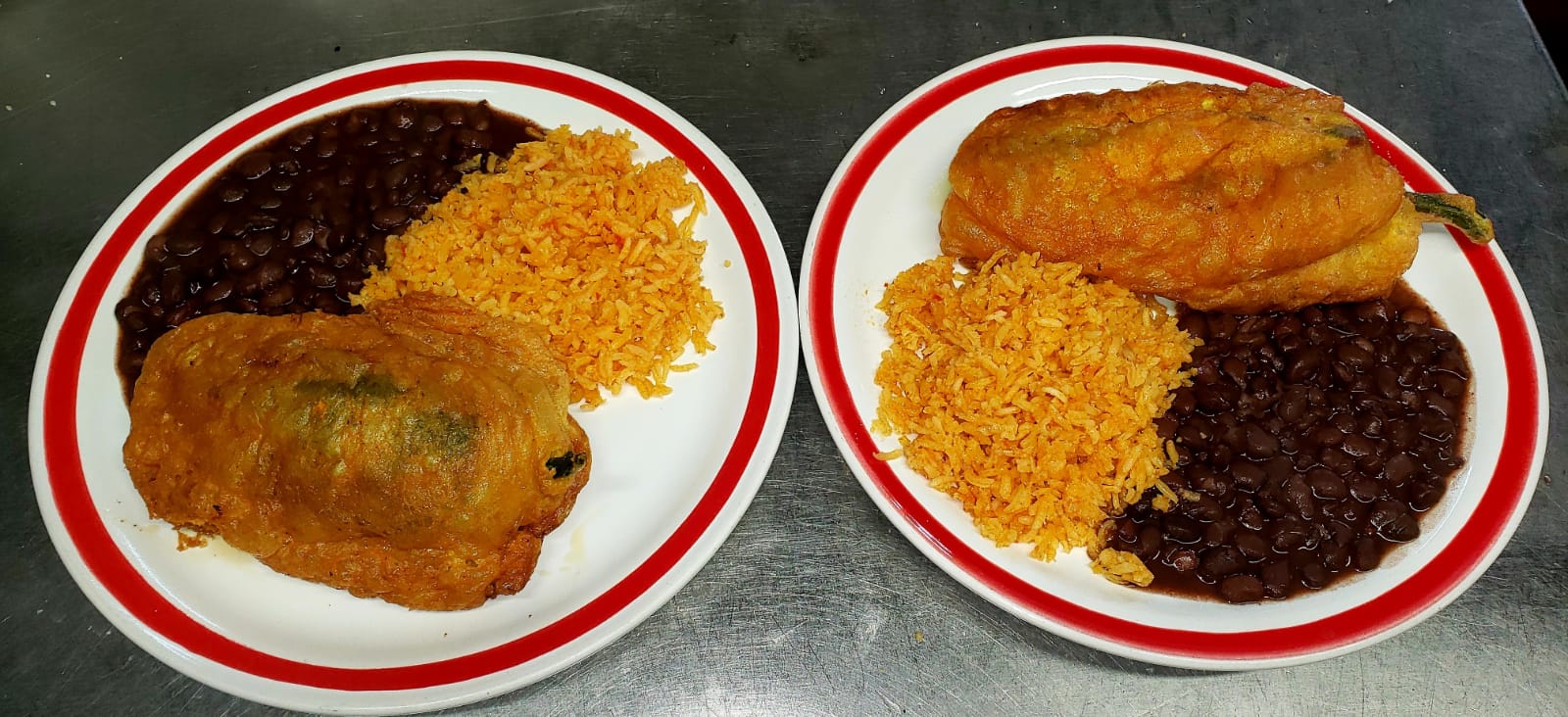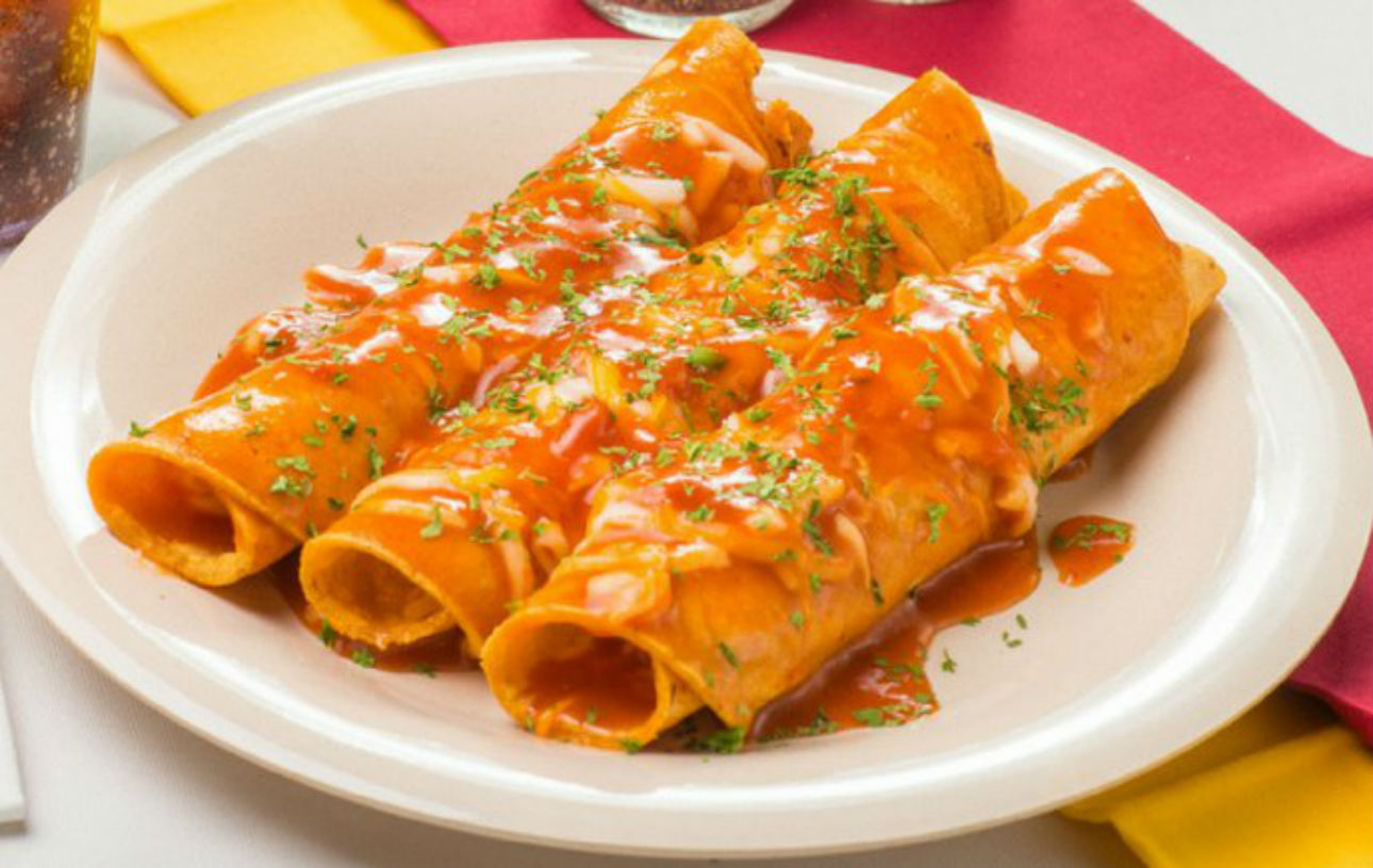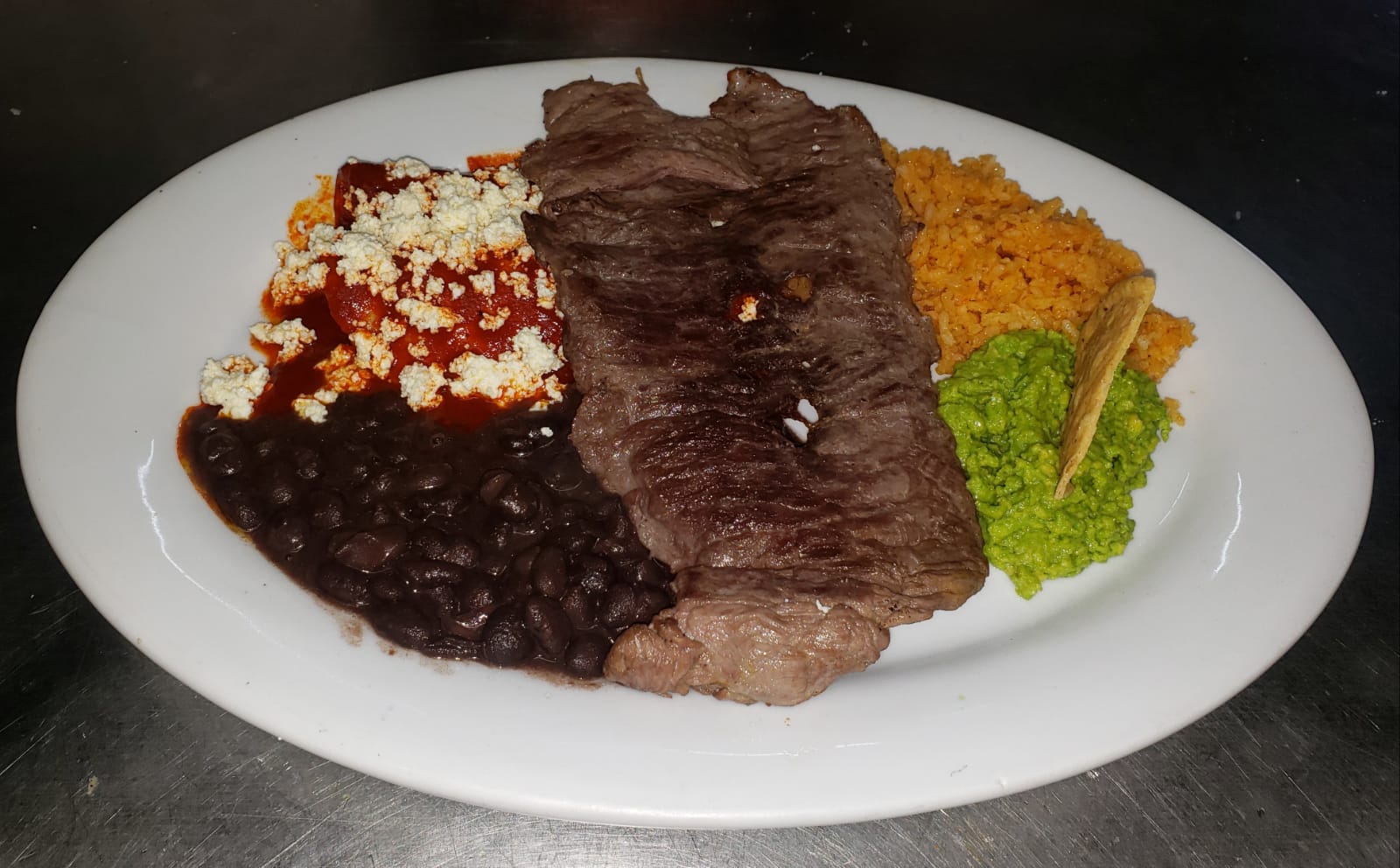 Acopañado de 2 enchiladas, arroz, frijoles y aguacate.