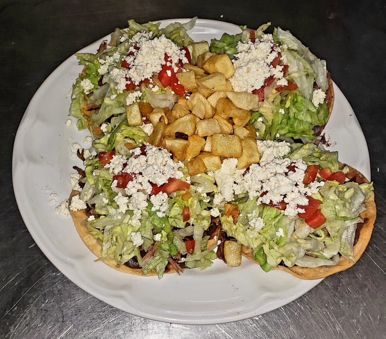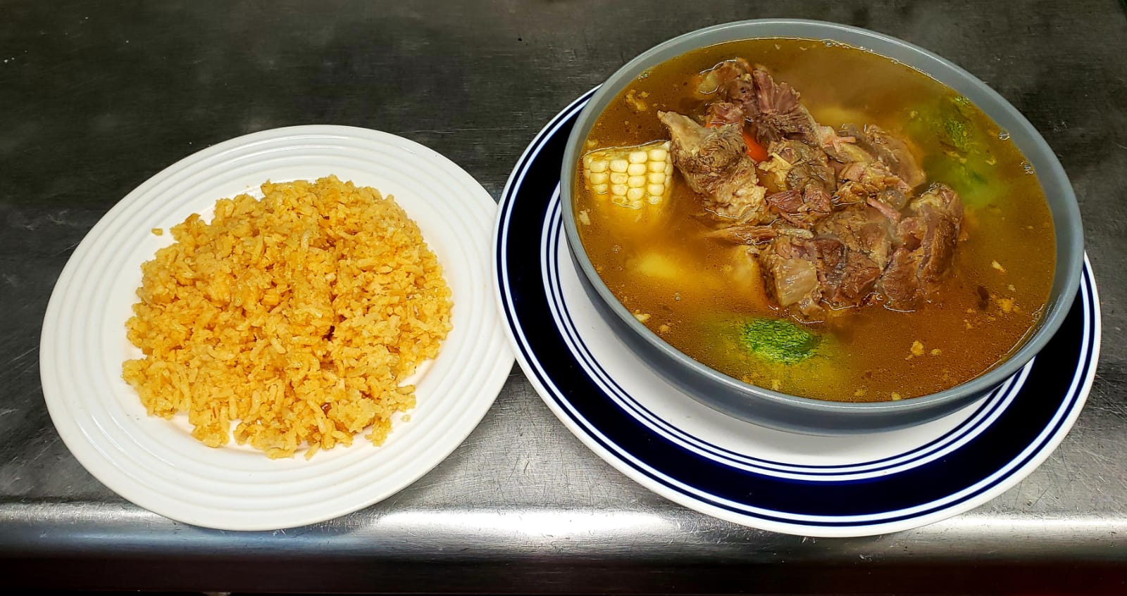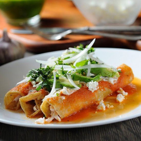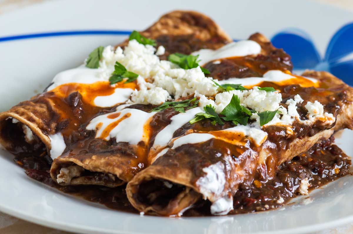 Acopañado de 2 enchiladas, arroz, frijoles y aguacate.