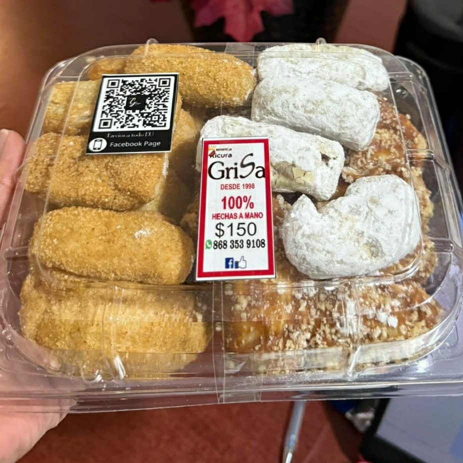 Empanadas rellenas de cajeta y piña mixtas , empanadas espolvoreadas con azucar y canela , empanadas con escarcha de cacahuate..