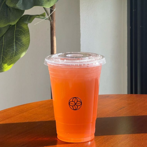 Agua mineral con jarabe frutal, como un refresquito pero mas ligero