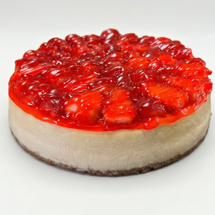 Cremoso cheesecake cubierto de fresa picada y glass/18cm diámetro/6-8 porciones