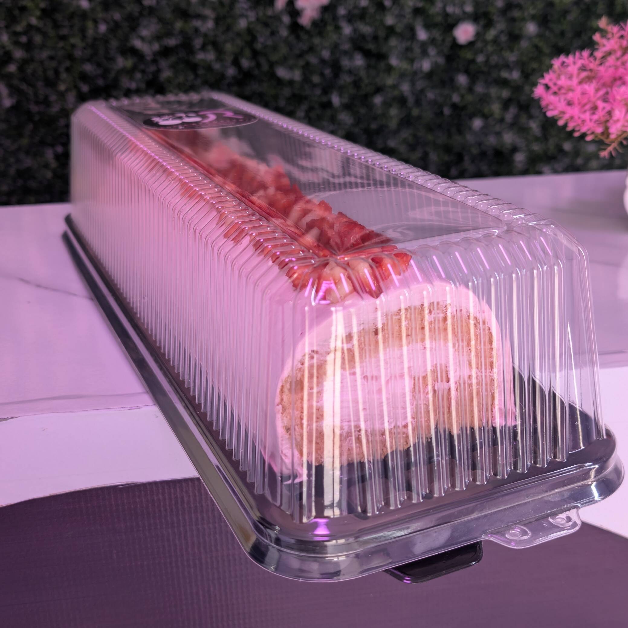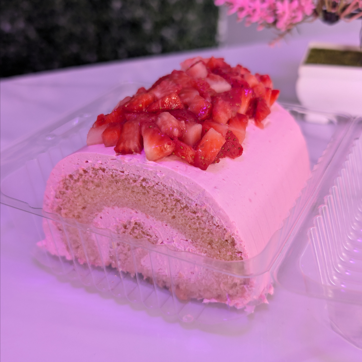Rollo suavecito relleno de crema con yogurt y cubierto con fresas /10cm largo/2-3 porciones