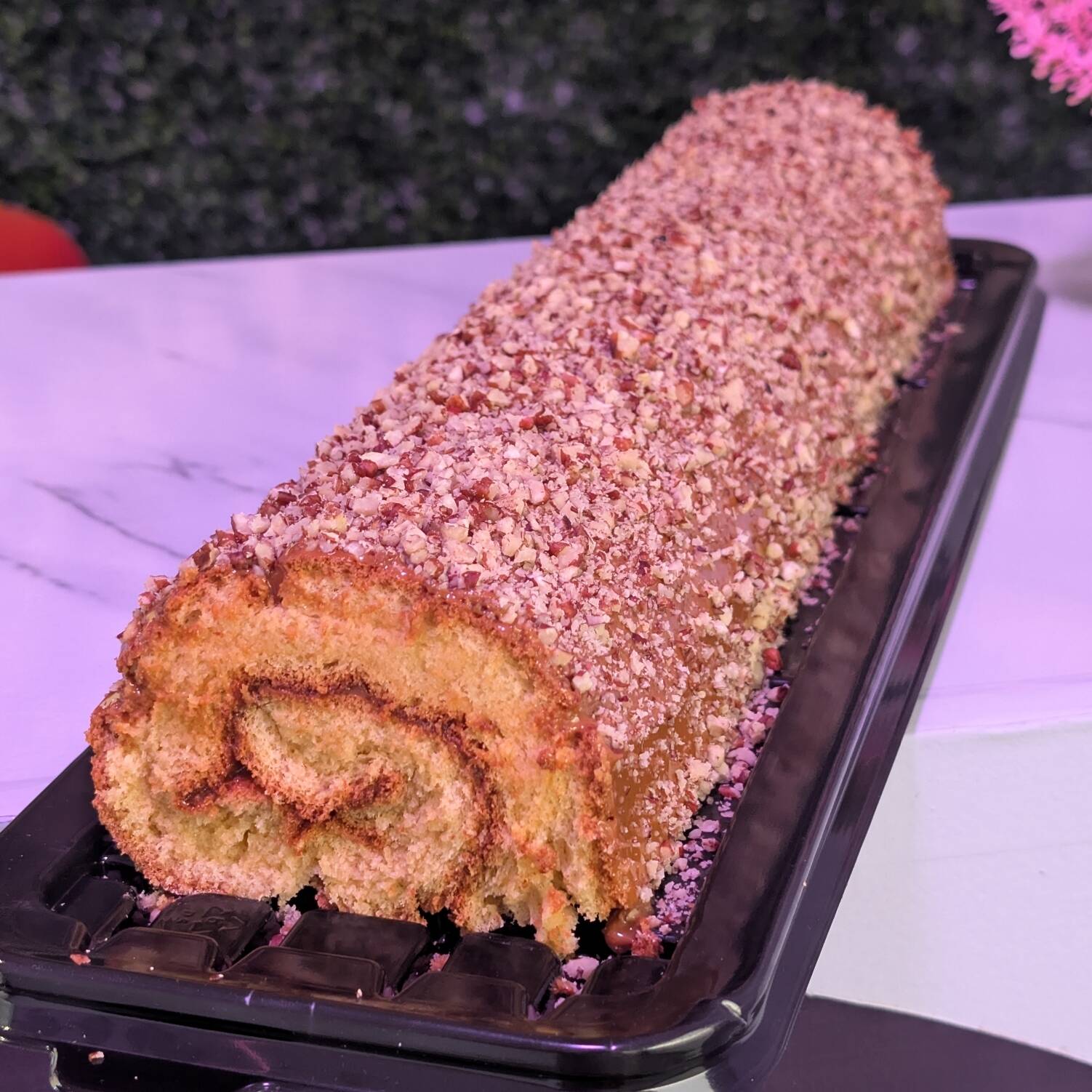Rollo suavecito relleno y cubierto de dulce de leche y nuez, tamaño grande/40cm de largo/12-16 porciones