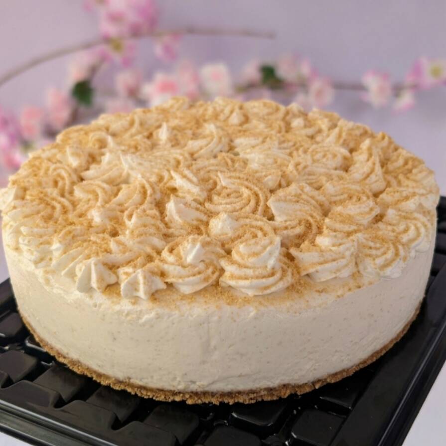 Cheesecake helado 🍦 cubierto de rica crema batida congelada con galleta de leche, sabor garantizado /23 cm de diámetro/10-12 porciones