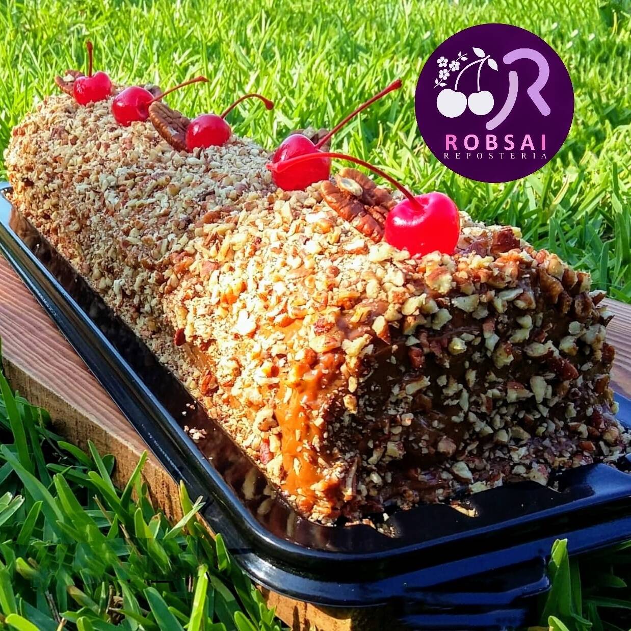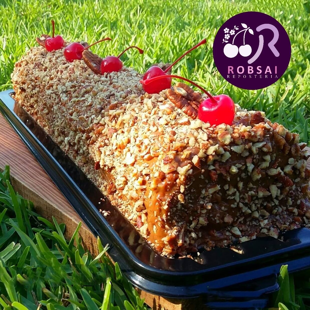 Rollo suavecito relleno y cubierto de dulce de leche y nuez, tamaño mediano/30cm de largo/9-12 porciones