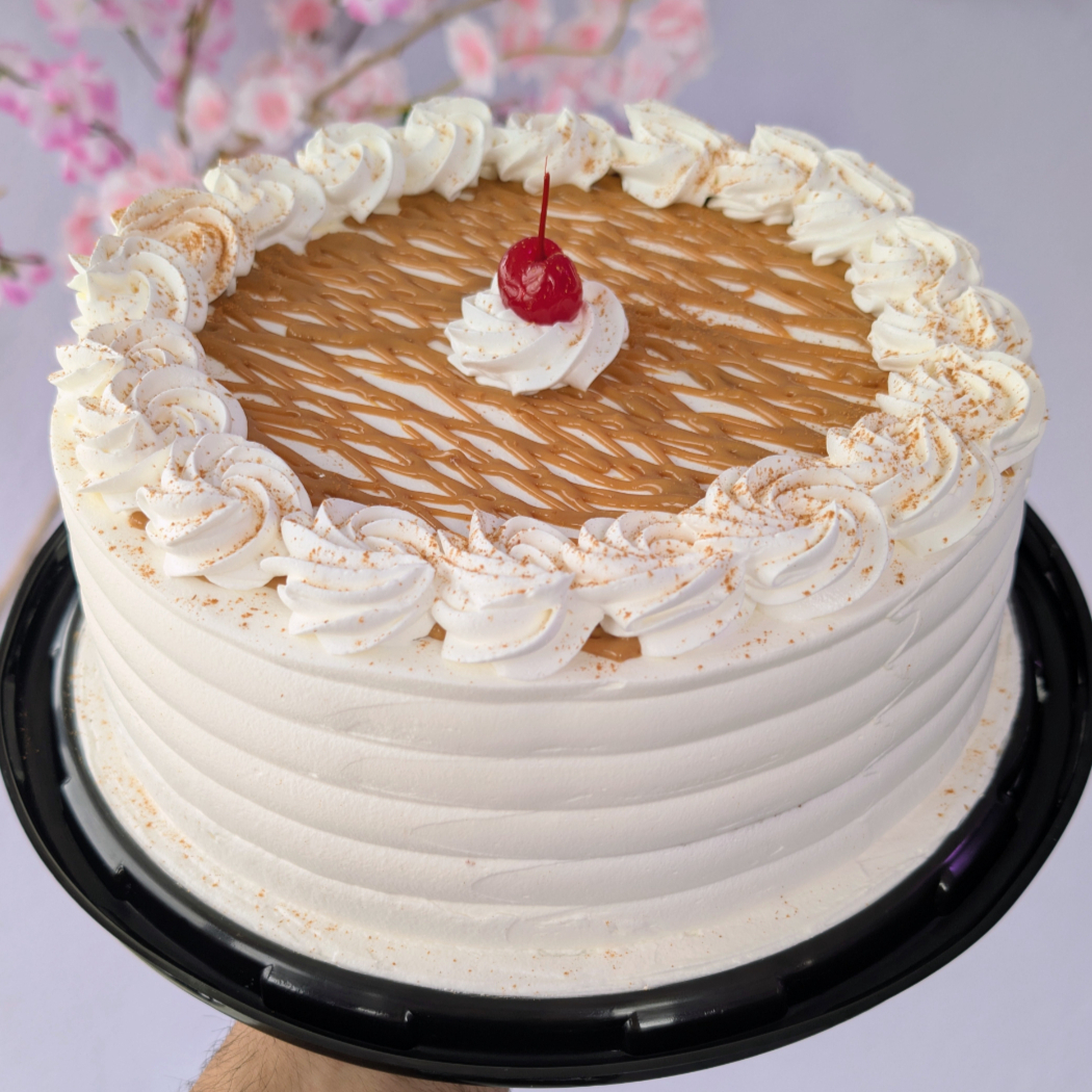 Deliciosa receta 100% original, pan esponjoso y crema ligera con jarabe de tres leches de bajo dulzor / 22cm de diámetro, 10 cm de altura / 12-16 porciones