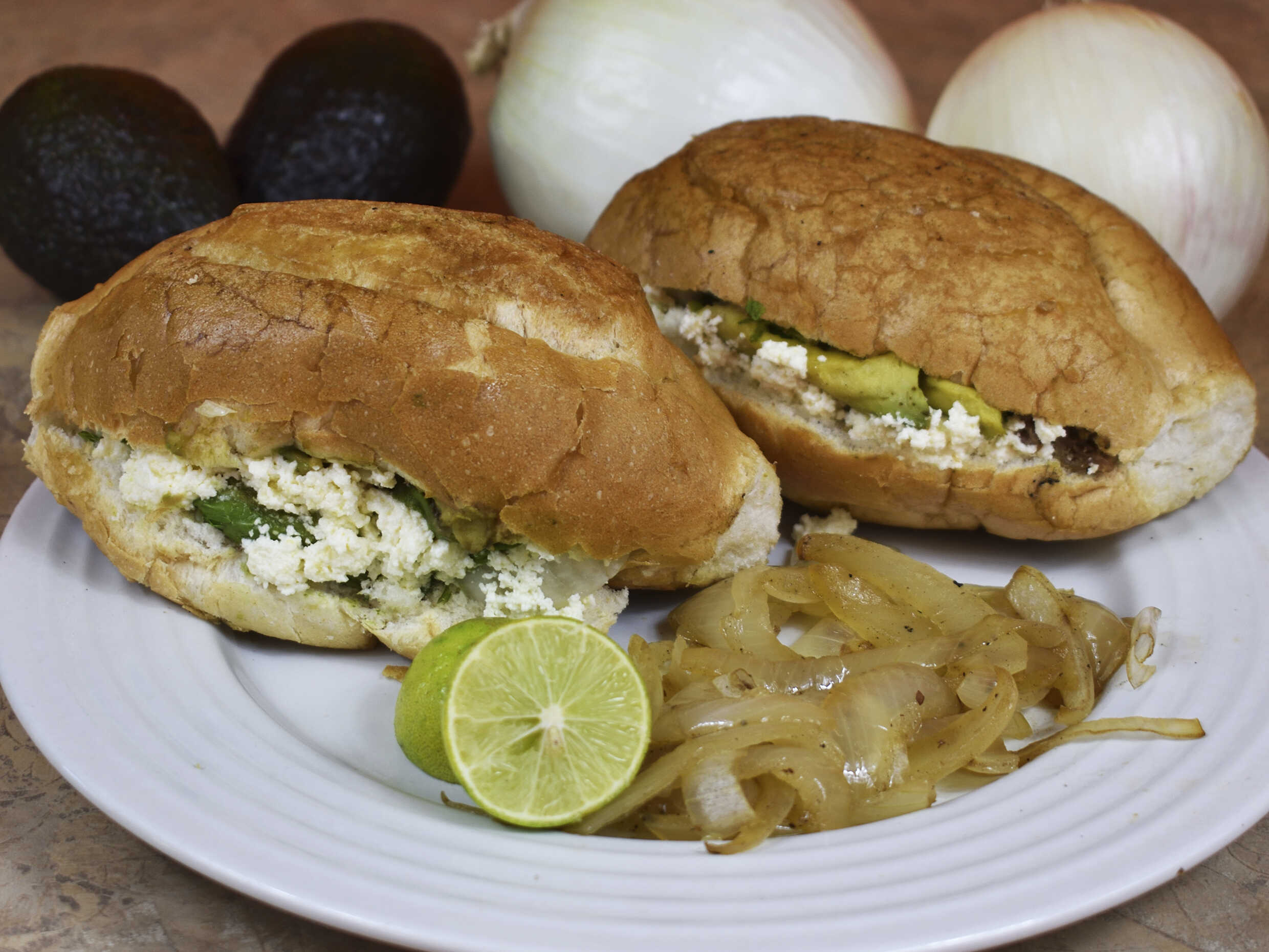 La Torta Contiene Bistec, Cebolla, 1 Rebanadita De Aguacate, Cilantro, Cebolla Asada y Bolsita Salsa verde (No contiene Utensilios Ni Limon)