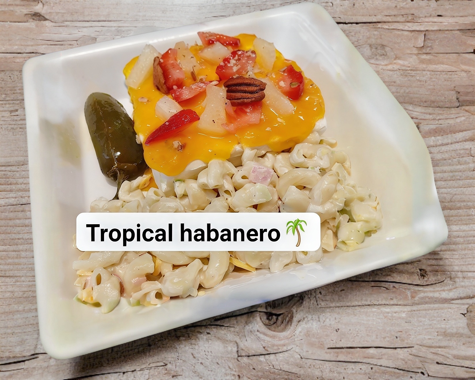 Elige 3 ensaladas (papa, primavera, frutos rojos, ensalada verde o coditos)