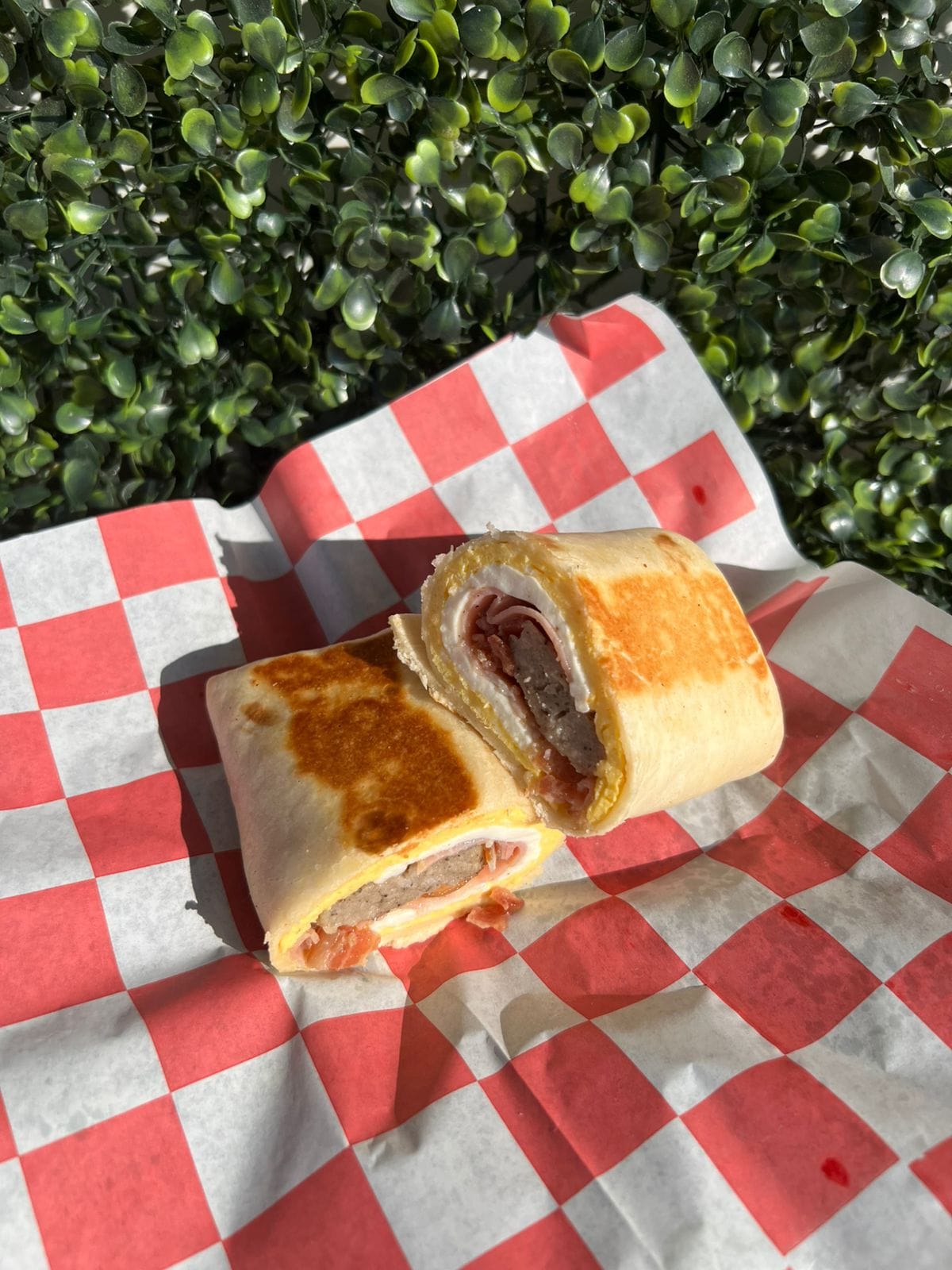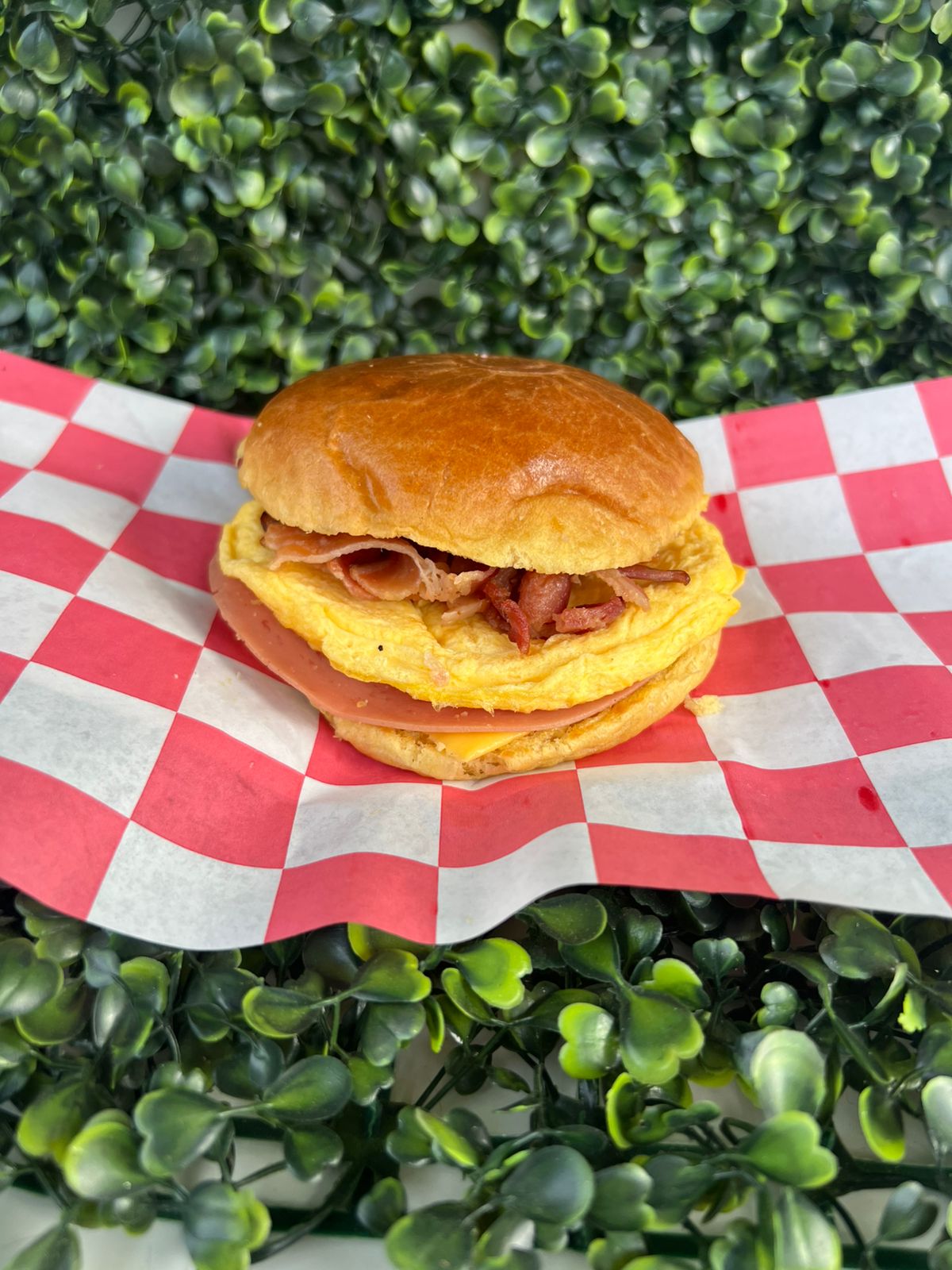 Jamón, tocino, huevo y queso americano.
