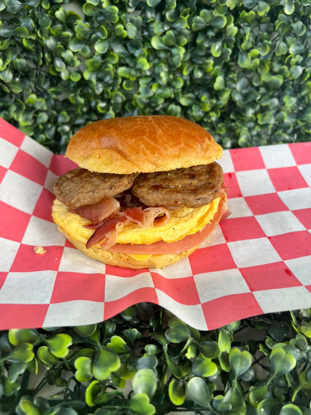 Triple carne, tocino, queso, doble jamón y huevo.