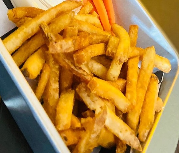1 Orden de palomitas de pollo, 1/2 orden de papas, 4 salchipulpo s y 1 jugo.
