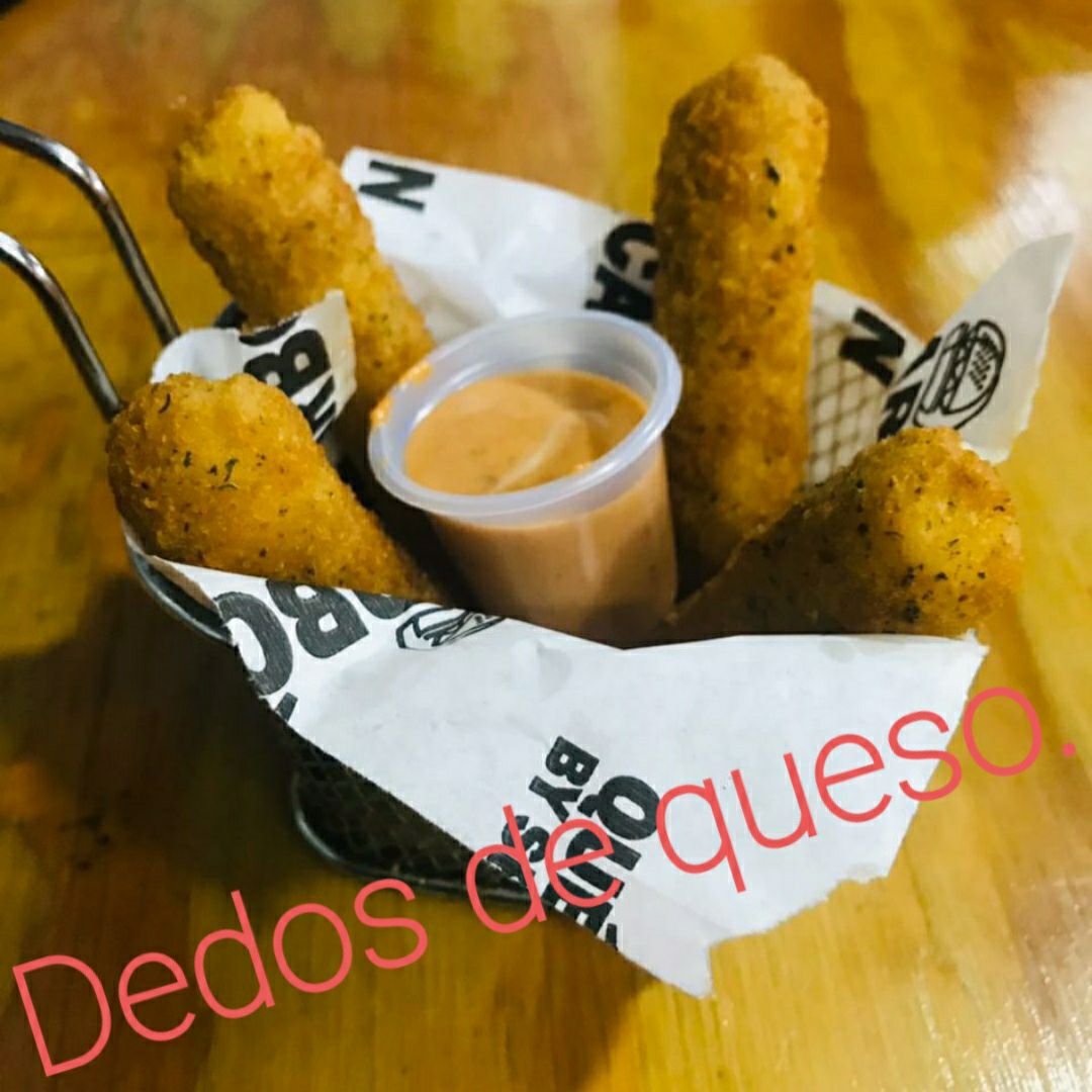 Trocitos de salchicha con papas a la francesa. acompañada de quesocheddar,mayonesa,catsup,mostaza,buffalo
