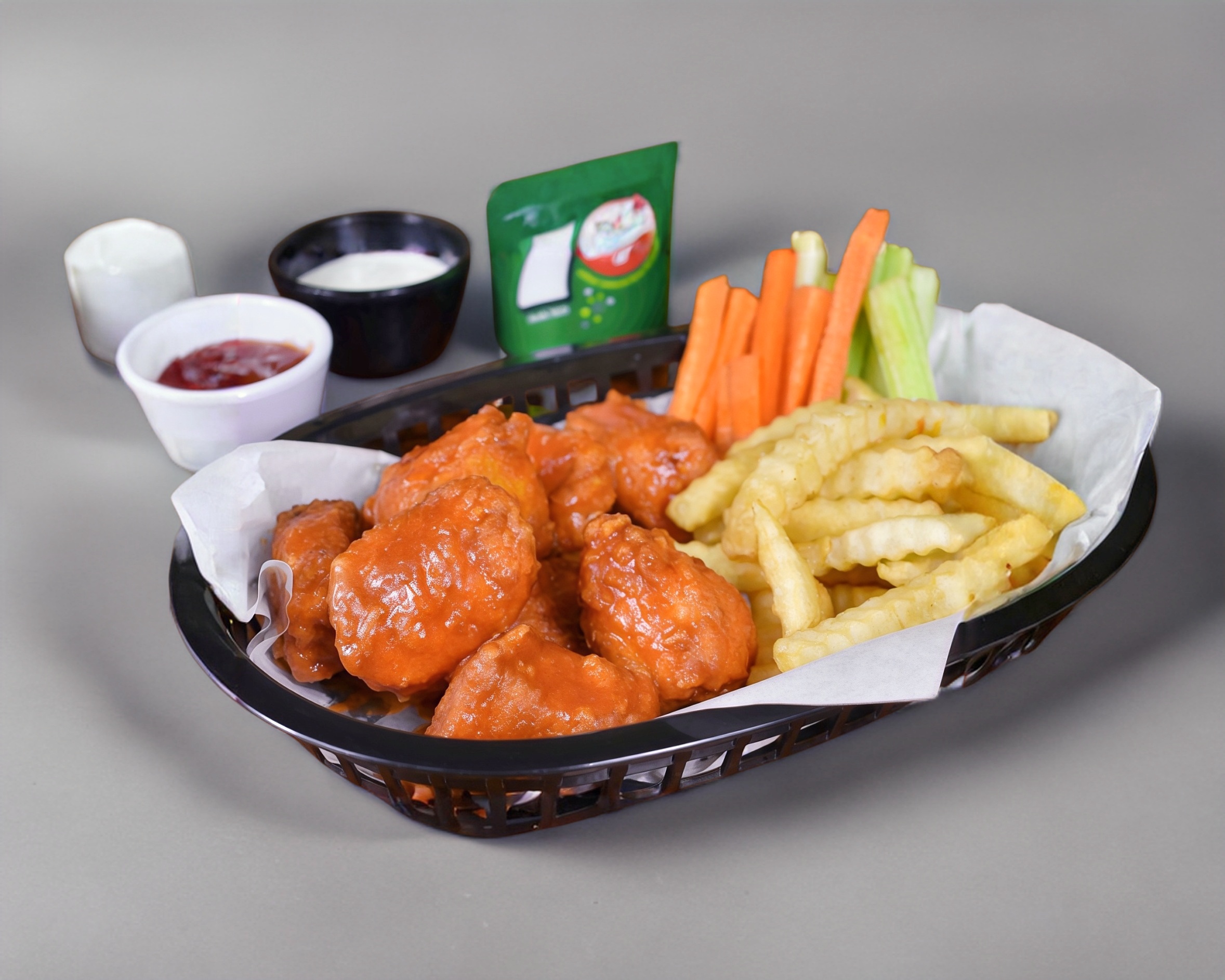 8 alitas o boneless + papas y un refresco