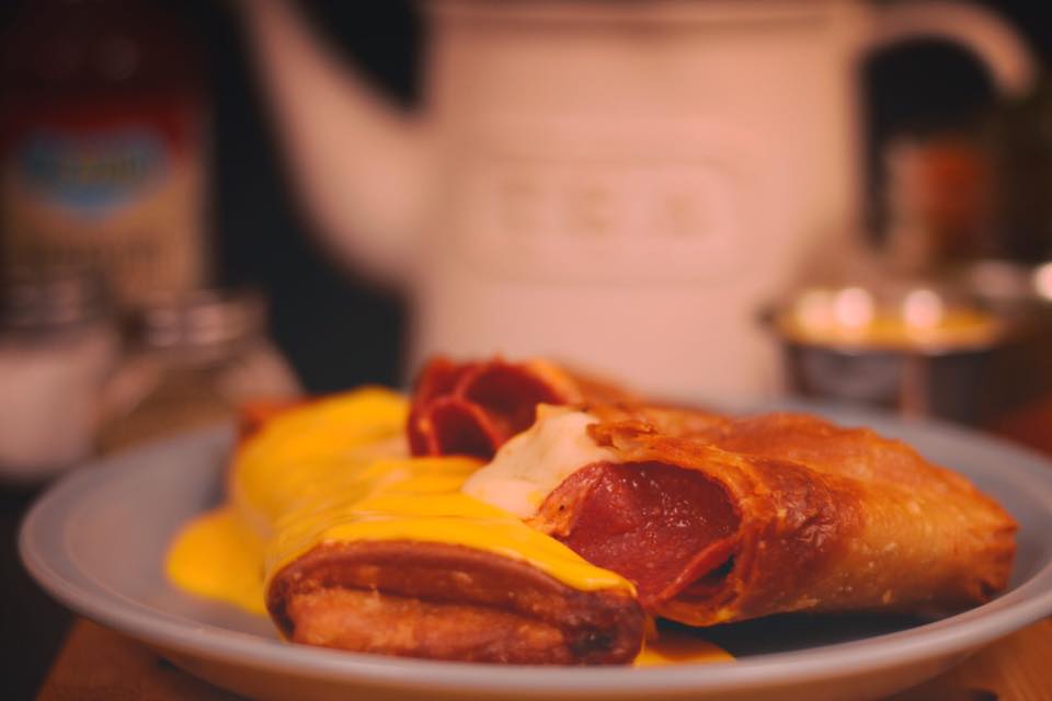 Burrito relleno de pepperoni y queso