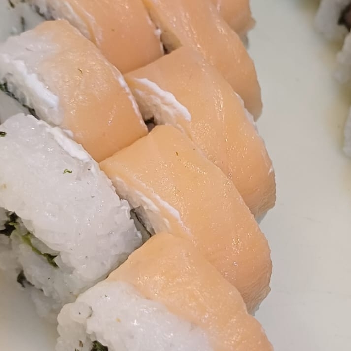 Cangrejo, philadelphia y pepino por dentro; salmón y aguacate por fuera.