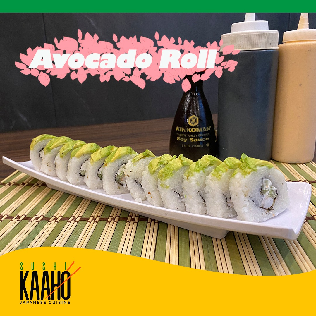 Aguacate, philadelphia por dentro; cangrejo por fuera, empanizado con pasta tampico arriba y ajonjolí.