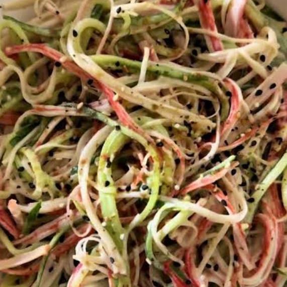 Cangrejo, pepino y furikake bañado con vinagreta de la casa.