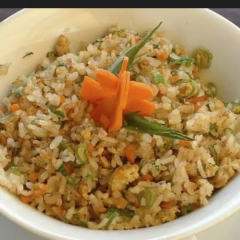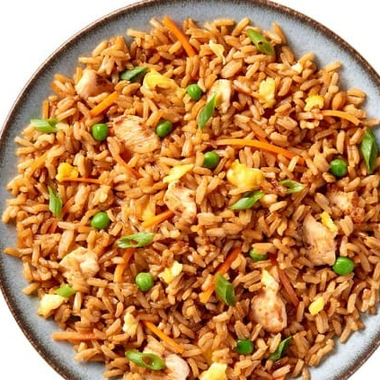 Arroz frito con zanahoria y calabazas con pollo