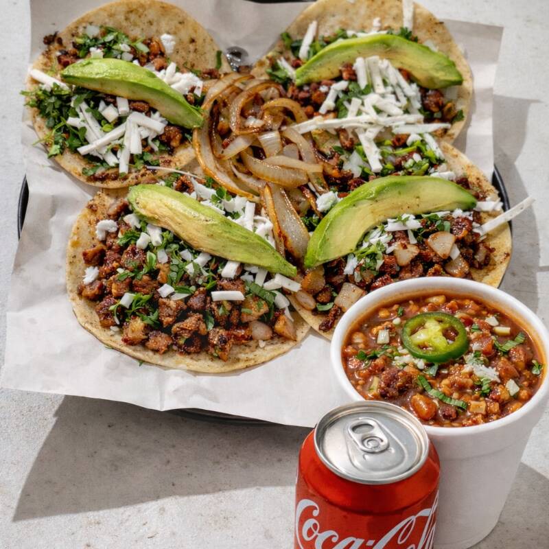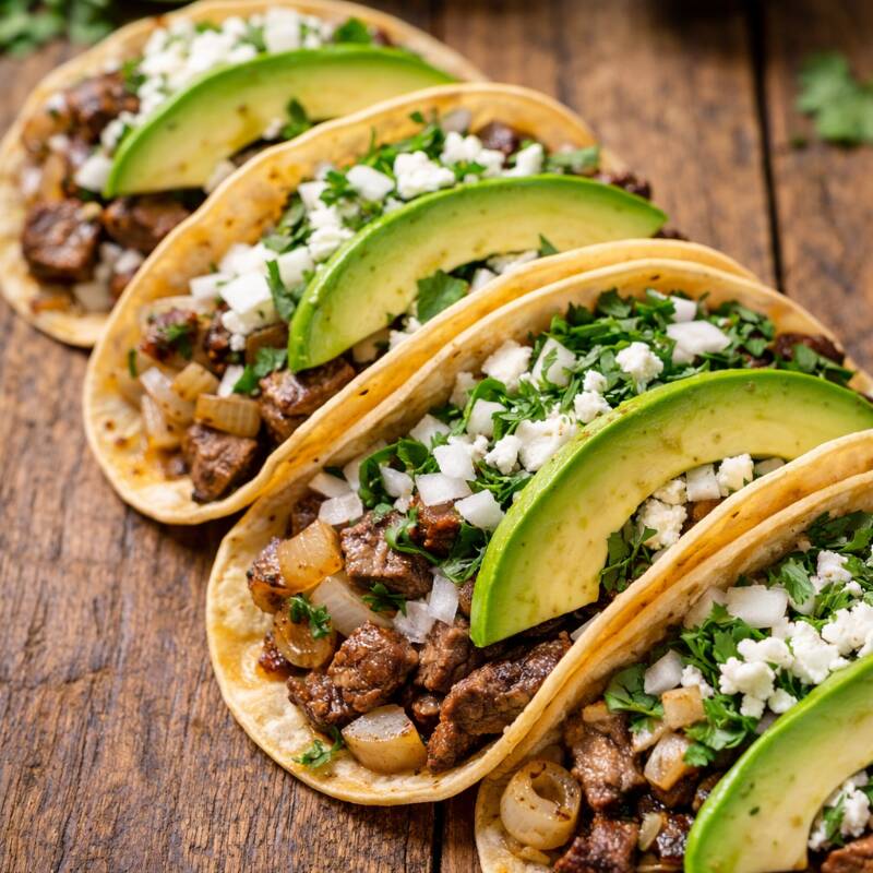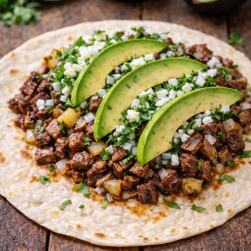 Bistec, Aguacate, Queso, Cebolla, Cilantro, Cebolla Asada
