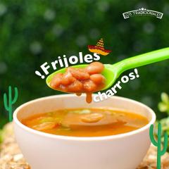 Vaso chico 8 oz de frijoles charros tradicionales.
