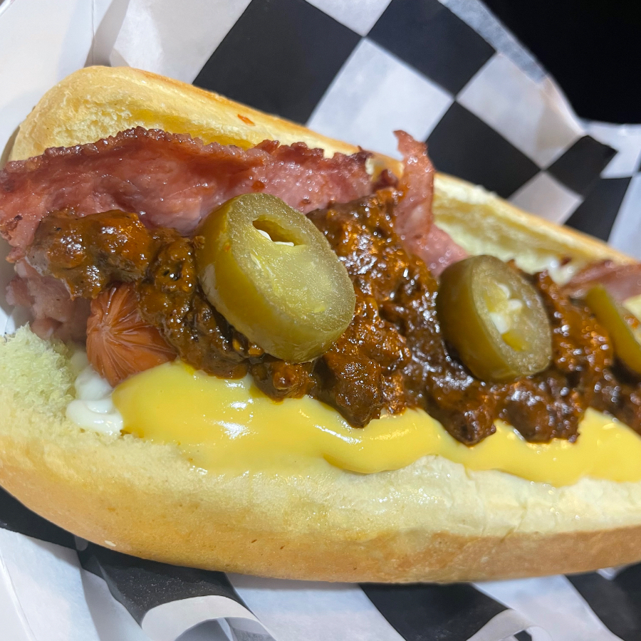 Salchicha, tocino, chilin , queso amarillo, mayonesa