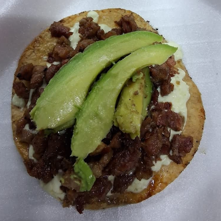 TOSTADA QUESO ASADERO CARNE Y AGUACATE