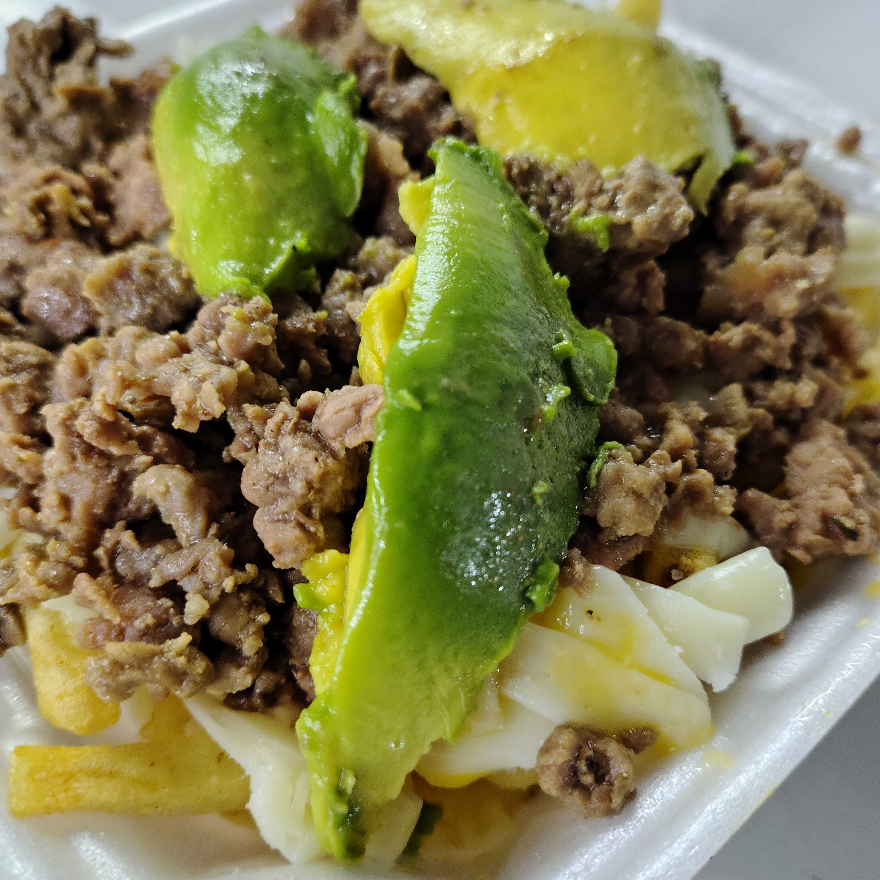 Papas fritas con queso asadero. queso amarillo. y carne a elegir