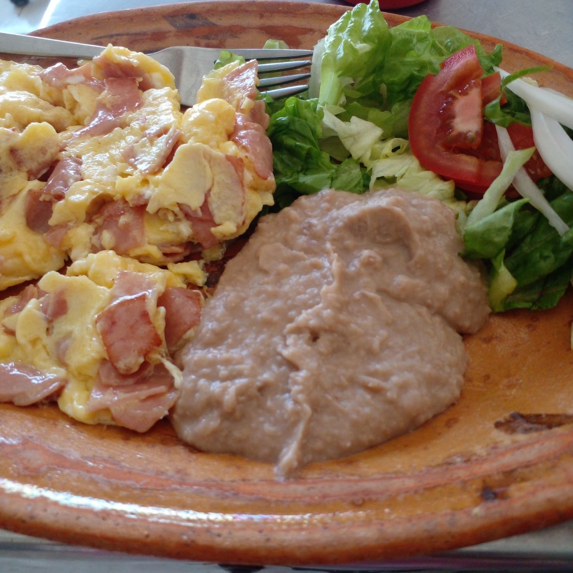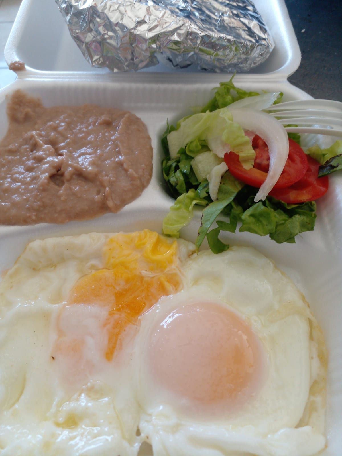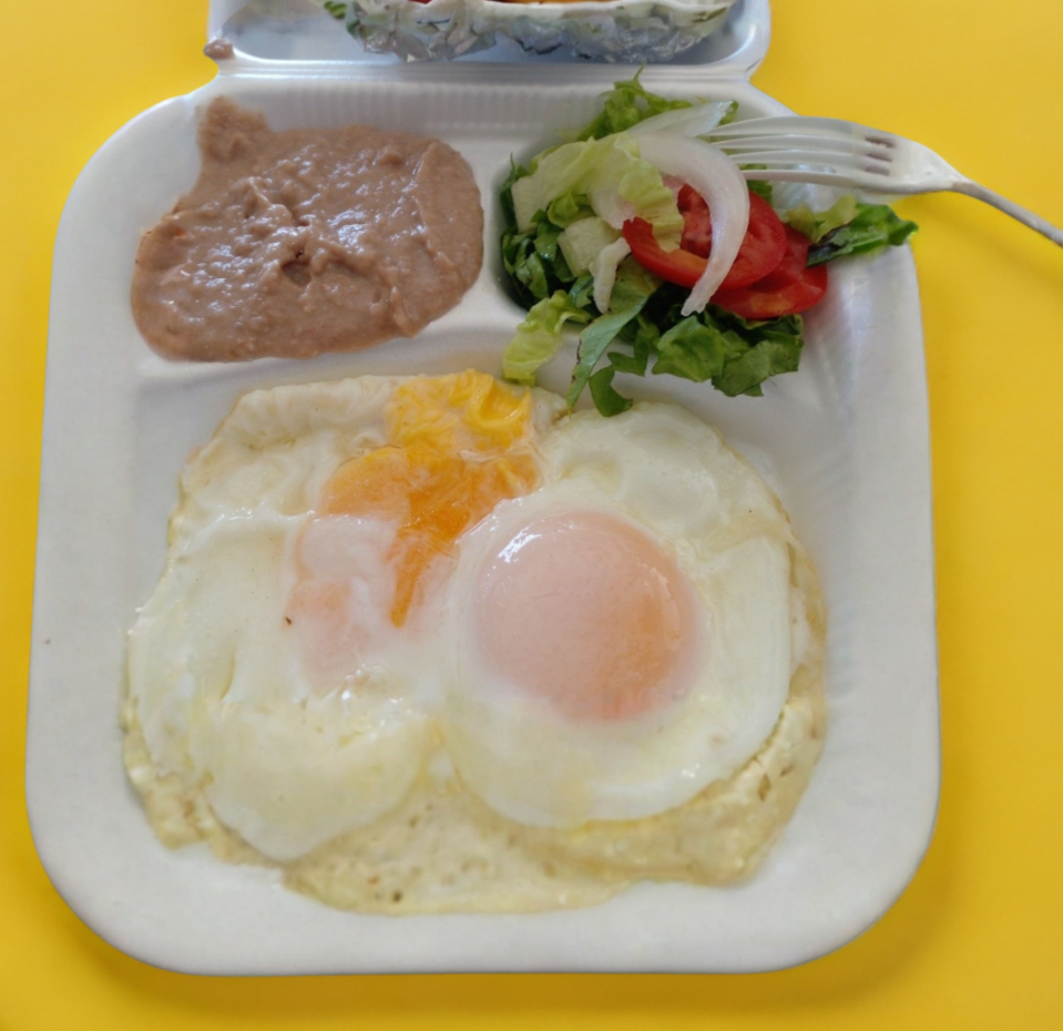 2 Estrellados incluye frijoles y ensalada,tenedor y 5 tortillas