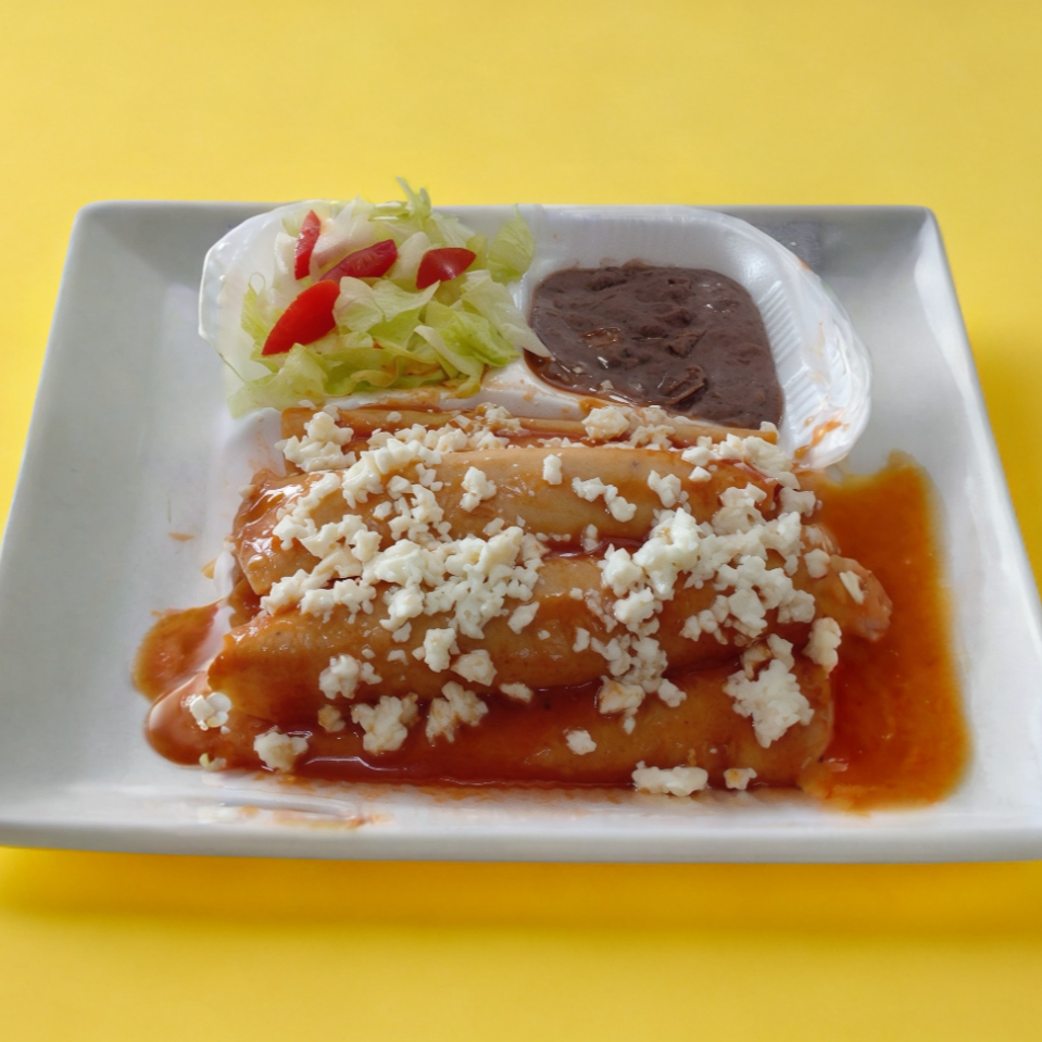 4 entomatadas con queso, frijoles y lechuga