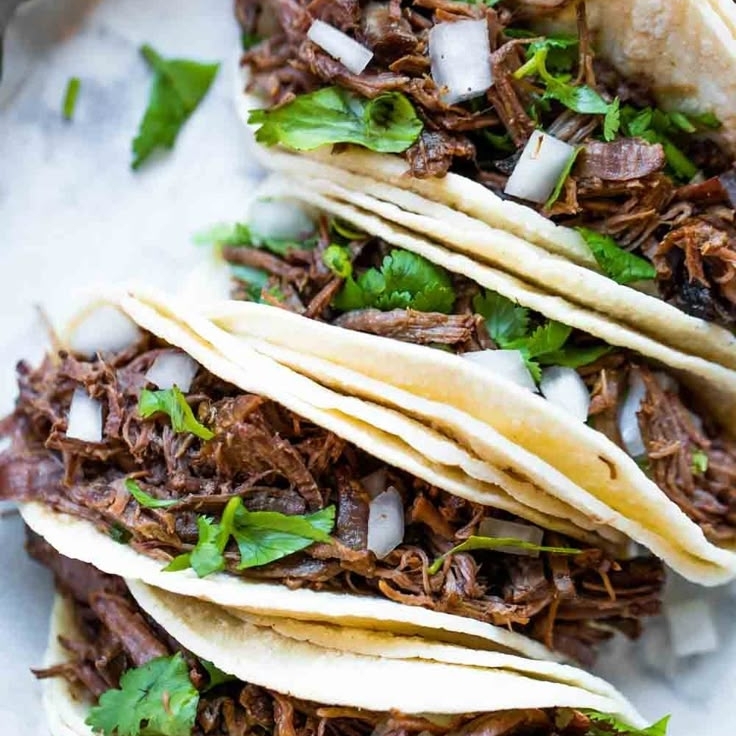 Tortillas dobles con carne y cebolla y cilantro y la salsa aparte