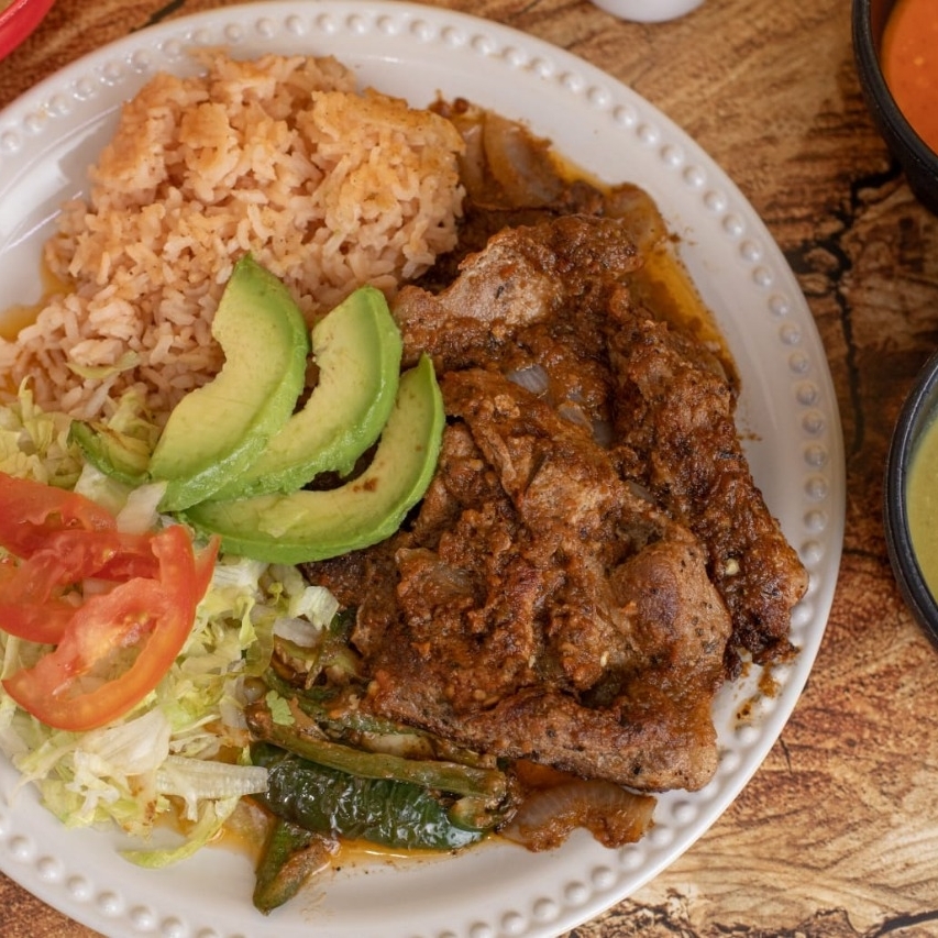 Prueba nuestros ricos antojitos con frijoles refritos, guiso, lechuga, tomate y aguacate.