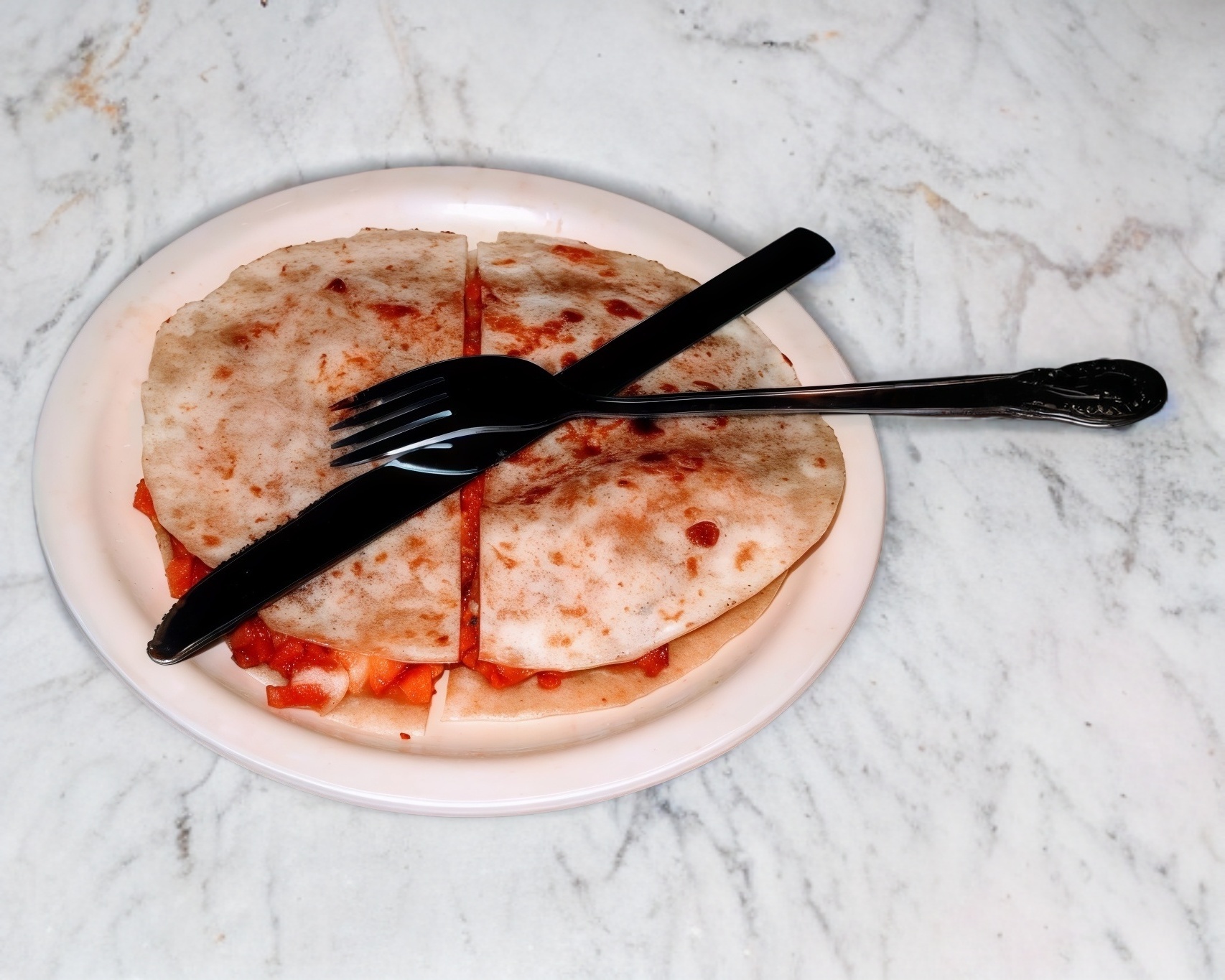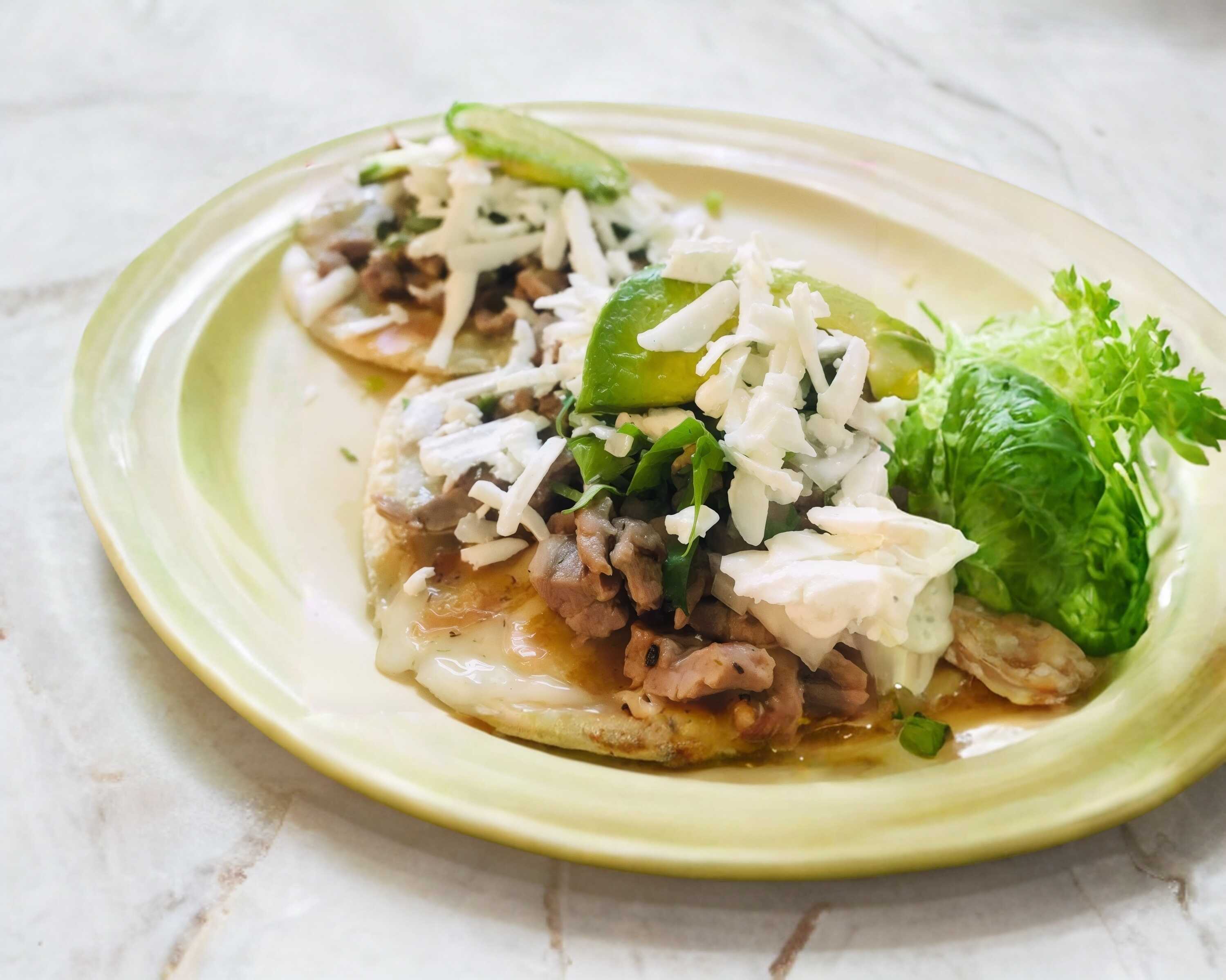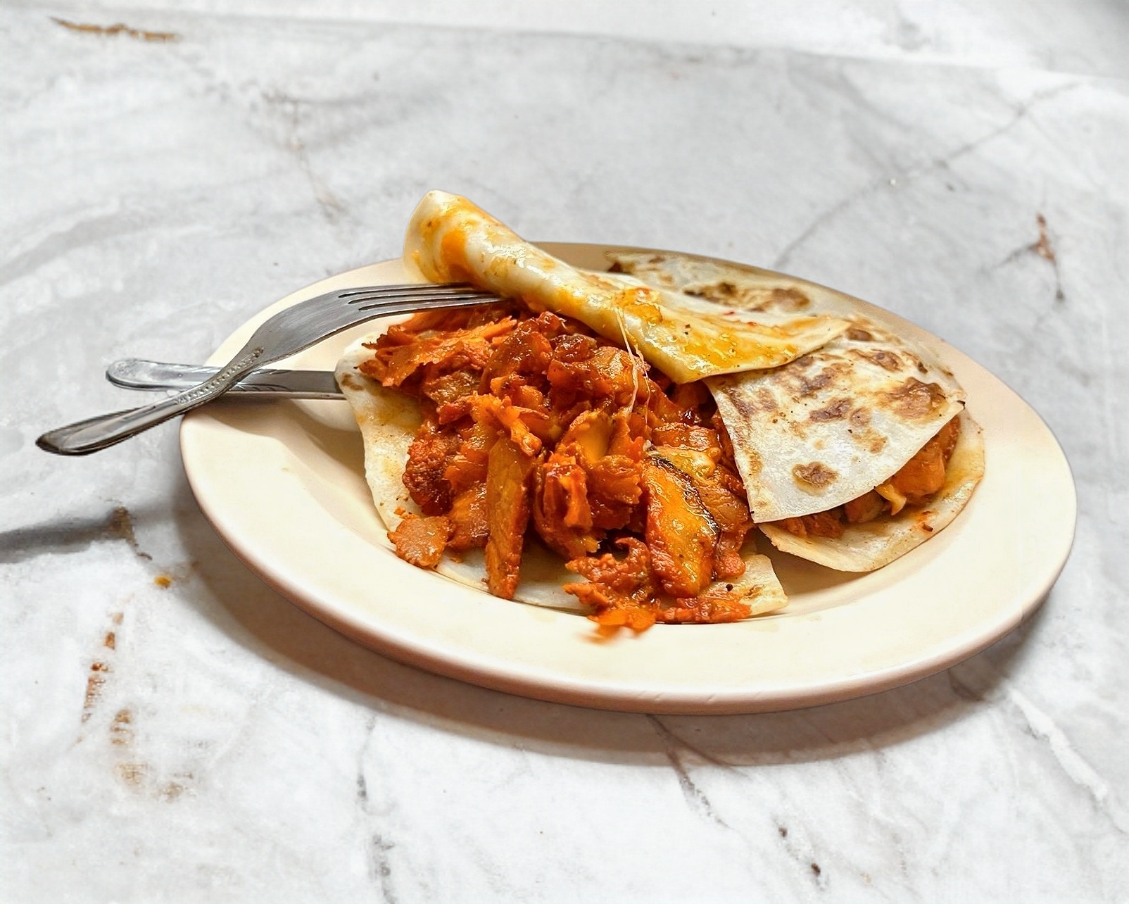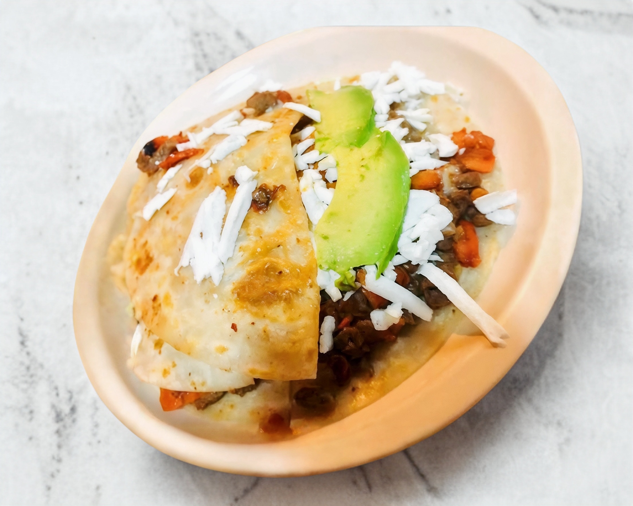 Bistec, pastor, champiñones y queso asadero en tortilla de harina