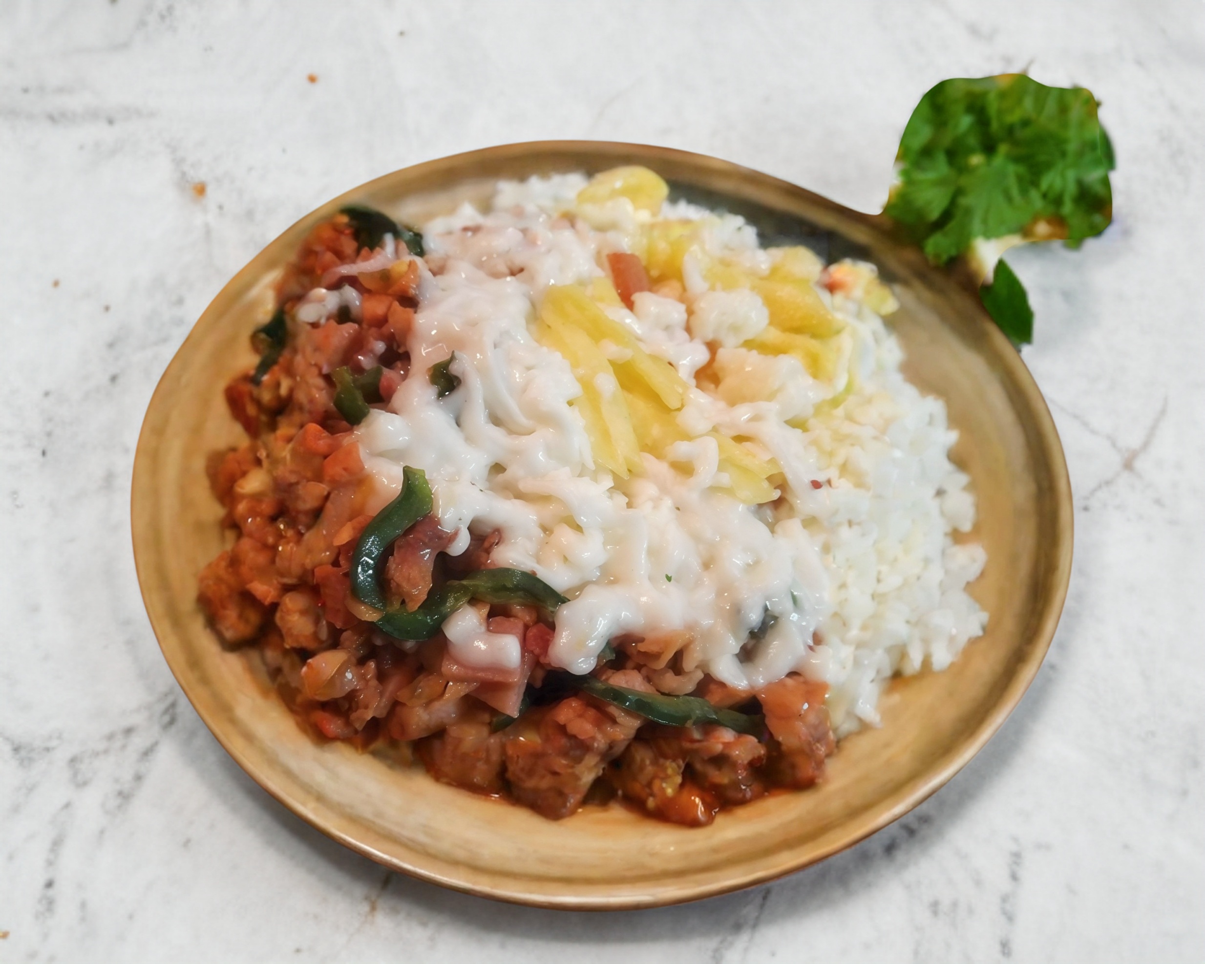 Bistec, pastor, champiñones, chorizo, jamón y queso asadero