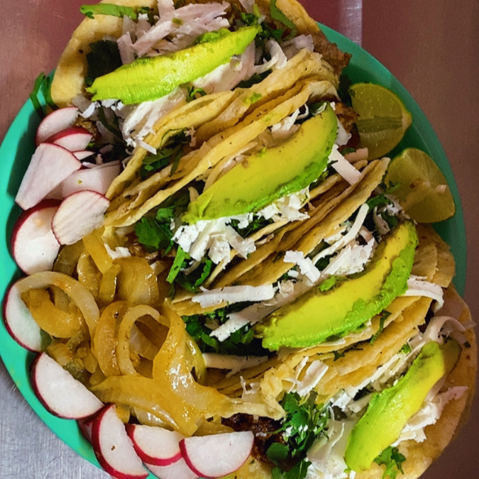cebolla, cilantro, queso y aguacate