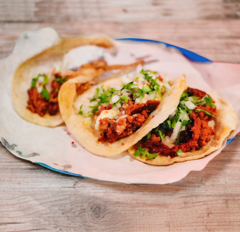 Tacos de Pastor ( por pieza) contiene:1 tortilla de maiz mediana, cebolla, cilantro, salsa roja , carne al pastor