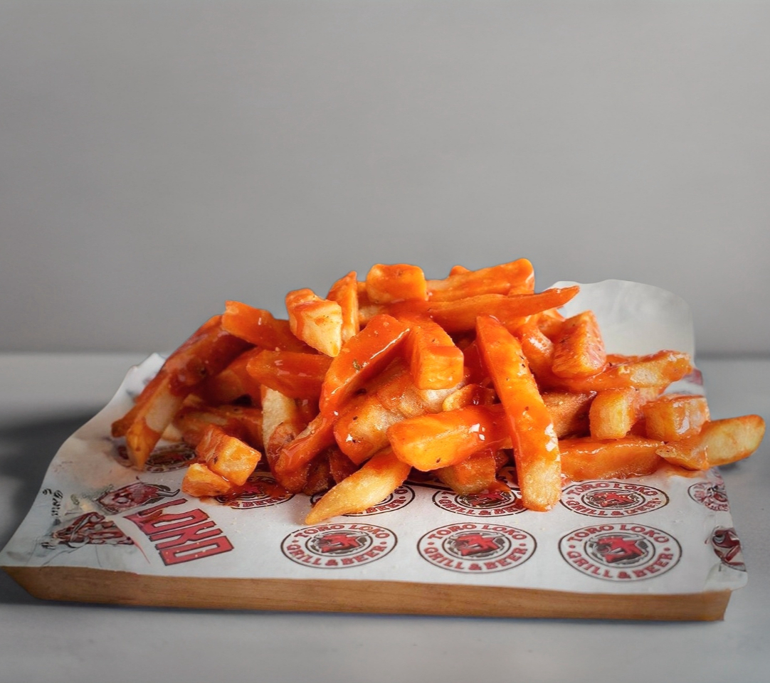 Papas fritas a la francesa bañadas con salsa búfalo, porción 500 gr.