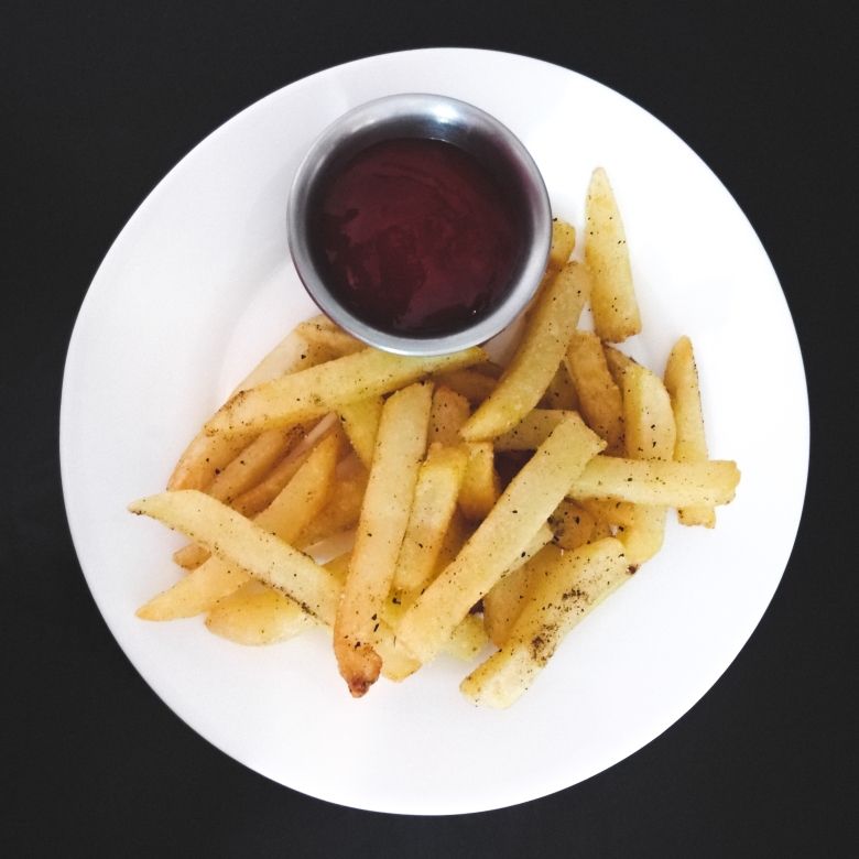 PAPAS A LA FRANCESA ACOMPAÑADAS DE SALSA CATSUP.