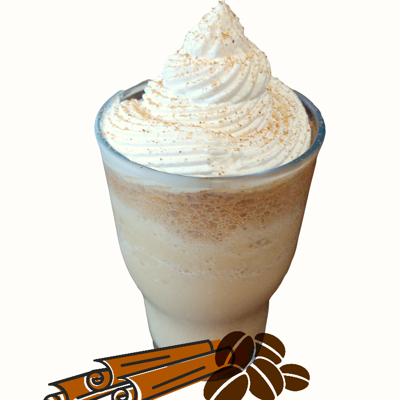 El tradicional Frappé de Café con leche y con un toque de canela en forma de hielo molido.
